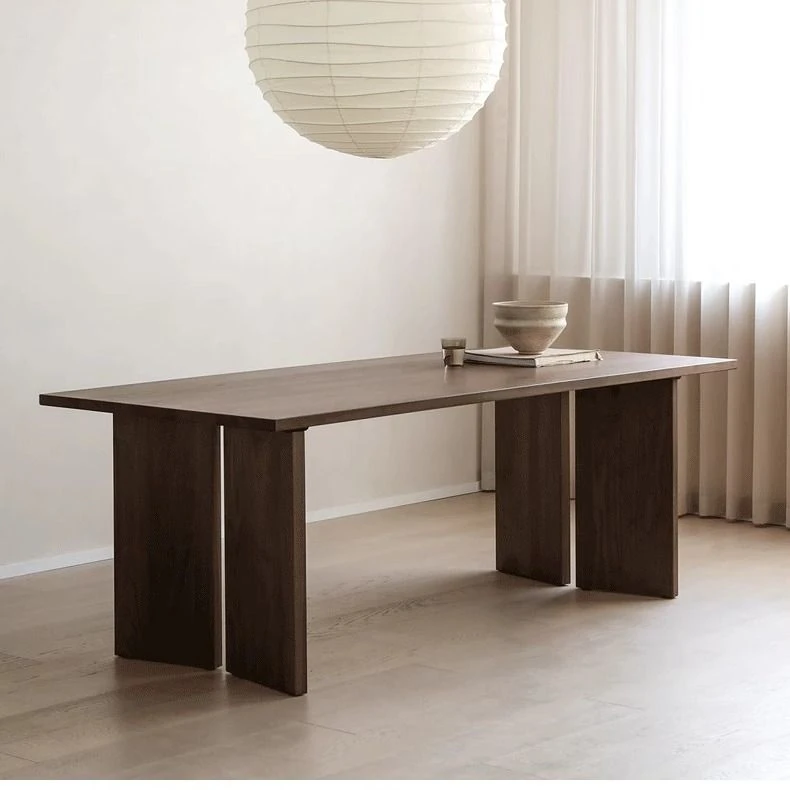 北欧スタイルの無垢材ダイニングテーブル|現代的でシンプルな長方形デザイン|小さな部屋にぴったりな和風ダイニングセット|優雅な食事空間を演出!