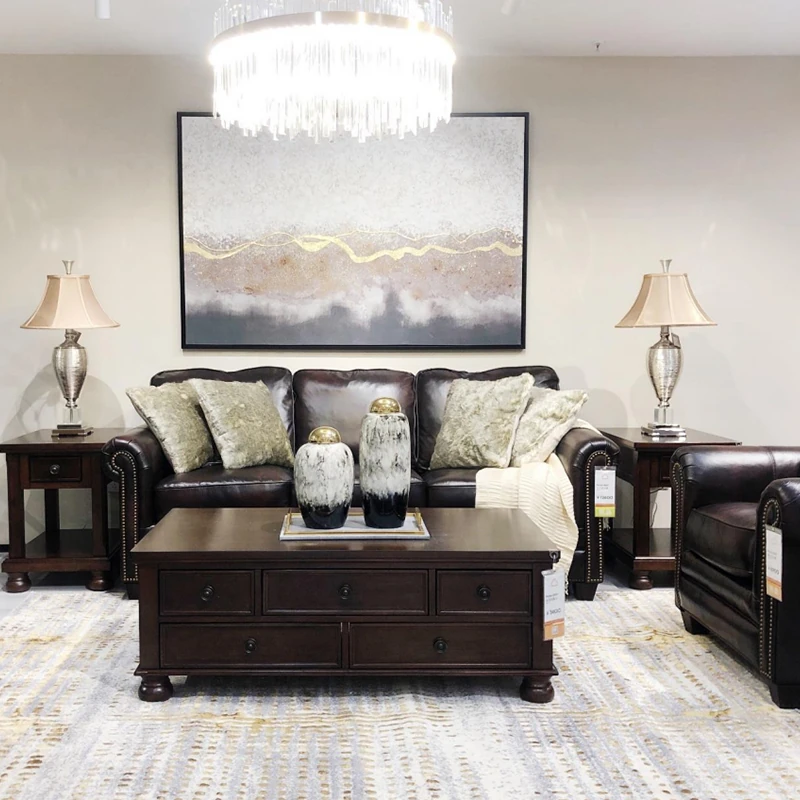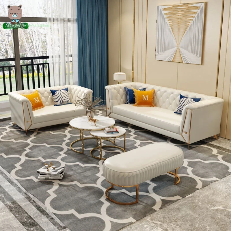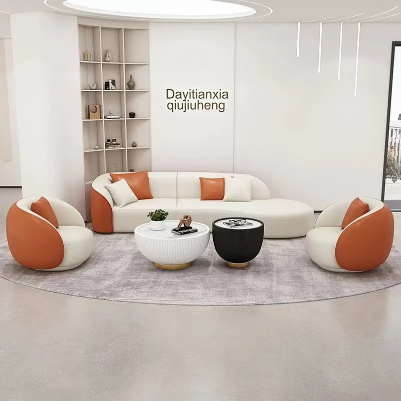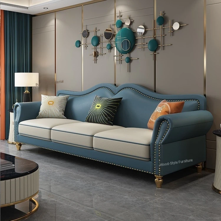 Stylish American Genuine Leather Sofa Set for Small Spaces - Minimalist Design for Single, Double, and Triple Seating - Perfect for Luxurious Living Rooms, Hotels, and Guest Houses