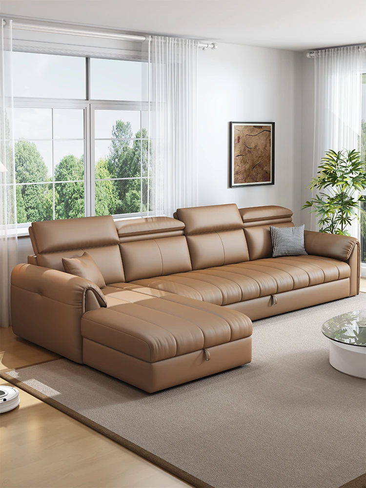 2024 New Arrival Modern Minimalist Genuine Leather Corner Sofa Set for Living Room - Perfect for Small to Medium Spaces with Premium Top-Grain Leather