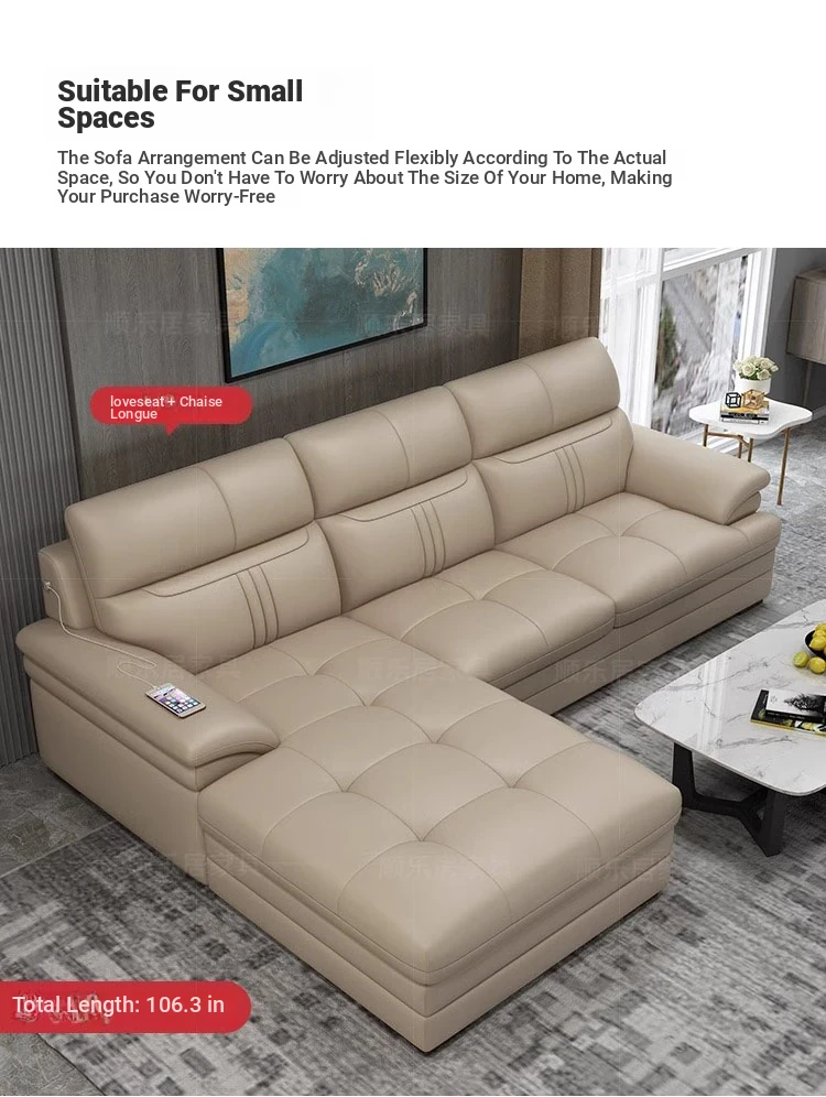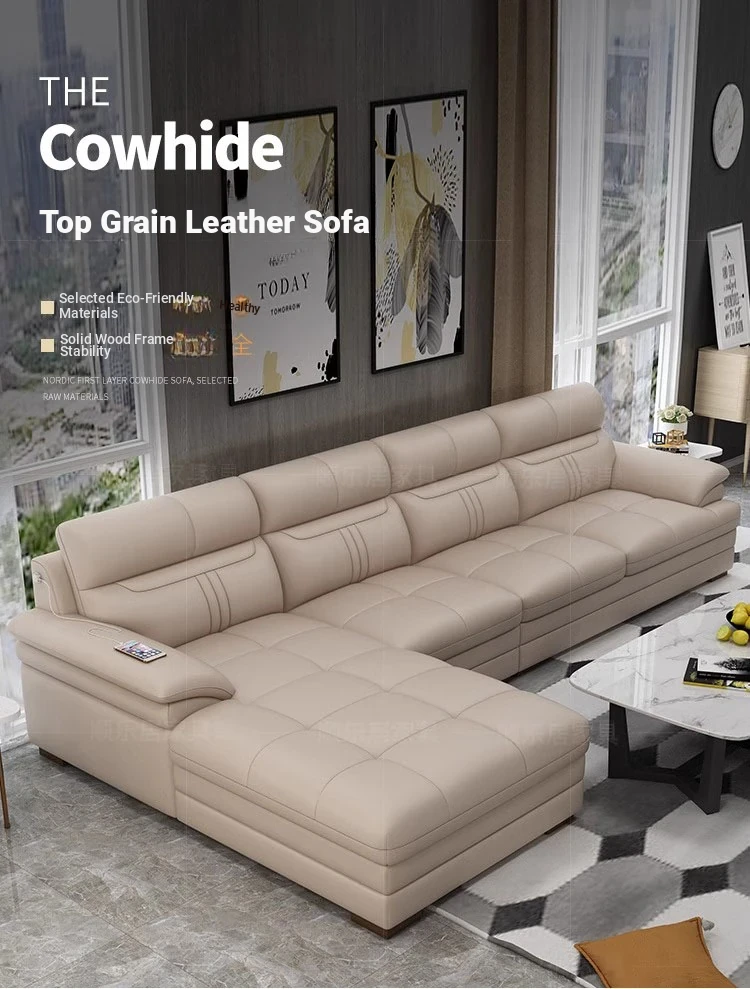 2024 New Arrival Modern Minimalist Genuine Leather Corner Sofa Set for Living Room - Perfect for Small to Medium Spaces with Premium Top-Grain Leather