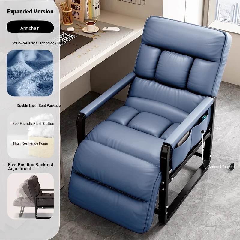 Blue footrest-enlarged version [dual-purpose bed and chair for lunch break] support Rod + backrest footrest adjustable reclining side armrest bag