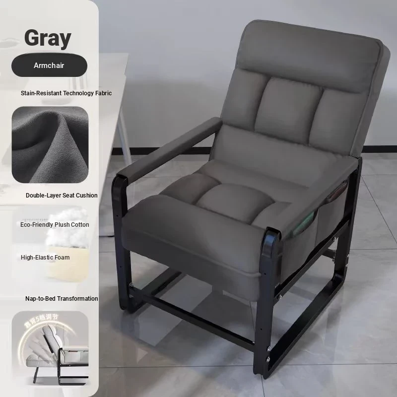Time limit big price reduction!! Gray enlarged version [dual-purpose bed and chair for lunch break] support Rod + backrest multi-level adjustment side armrest bag