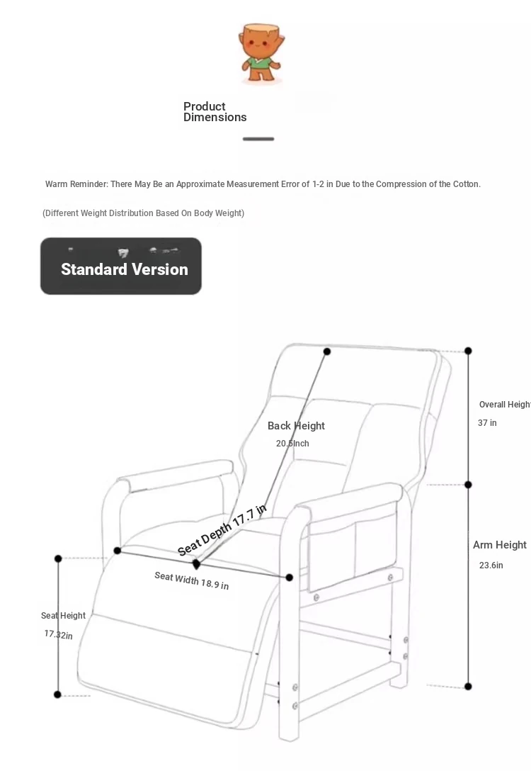 Rice White enlarged version [lunch break bed and chair dual-use] support Rod + backrest multi-level adjustment side armrest bag