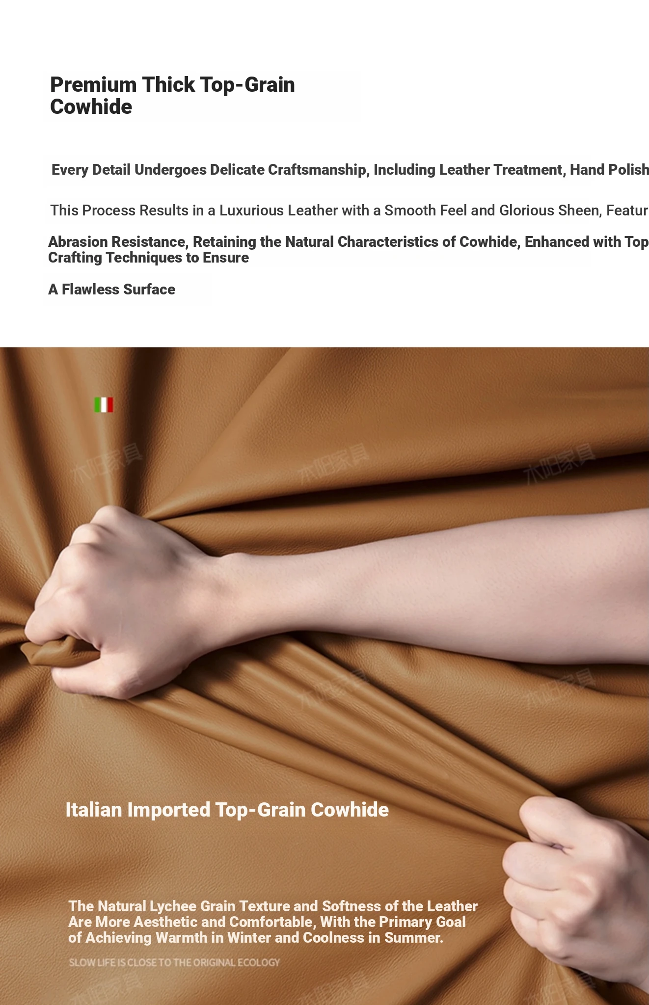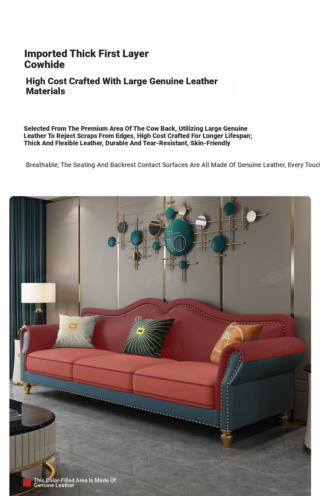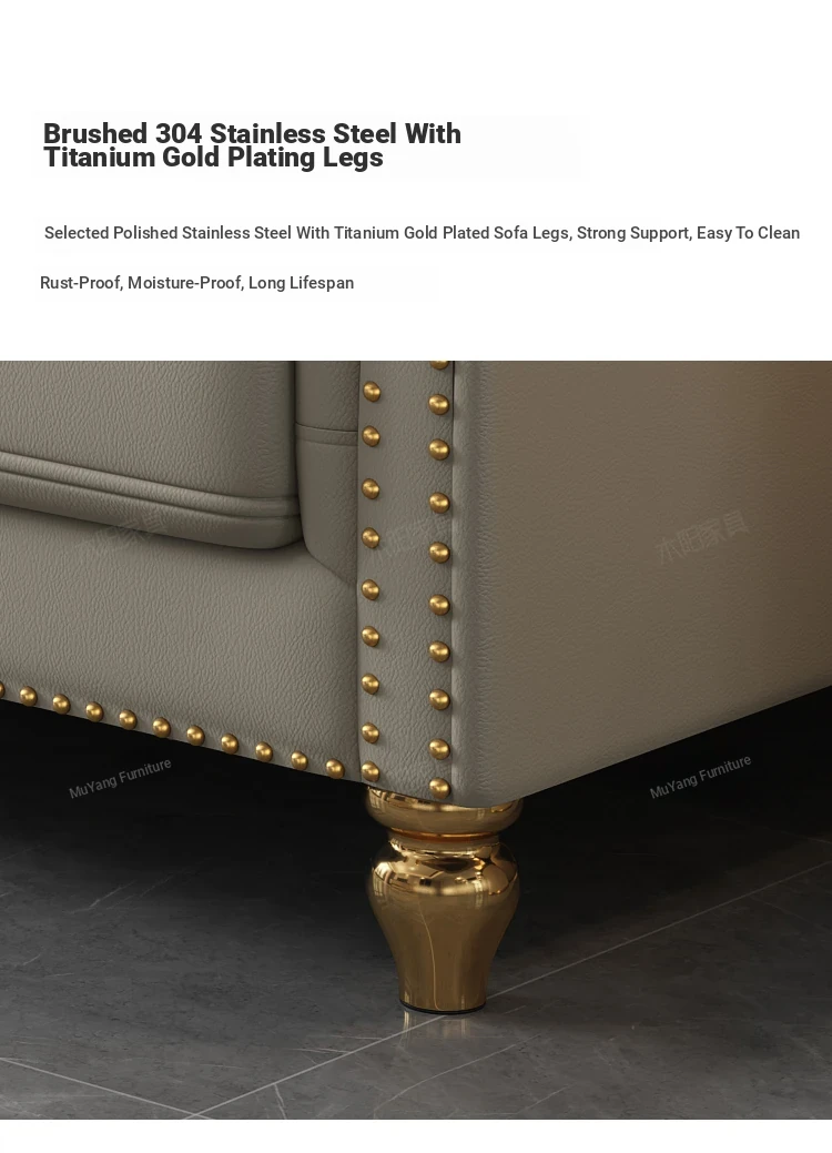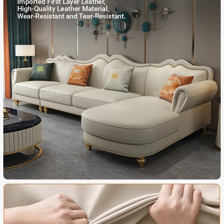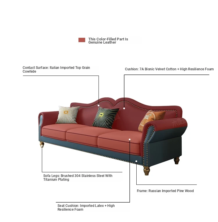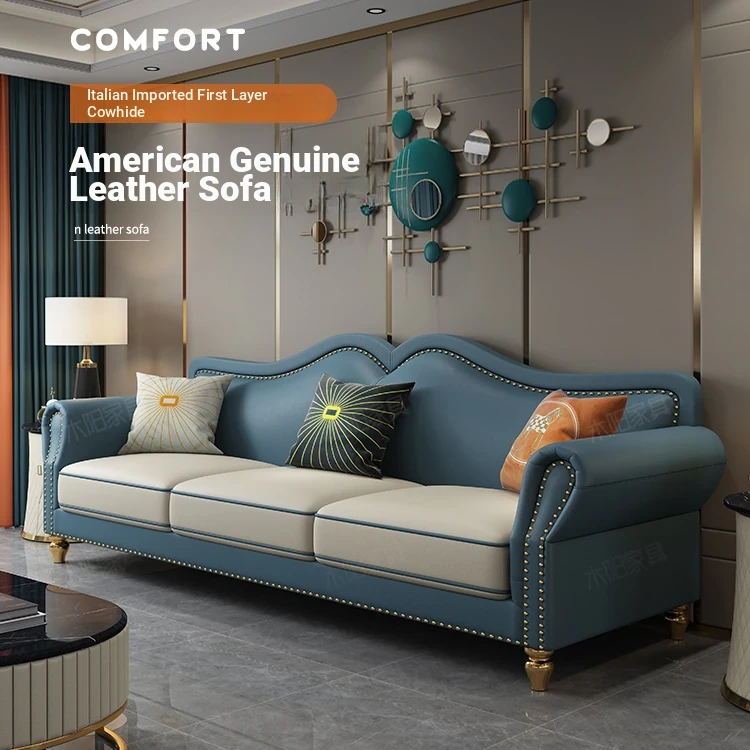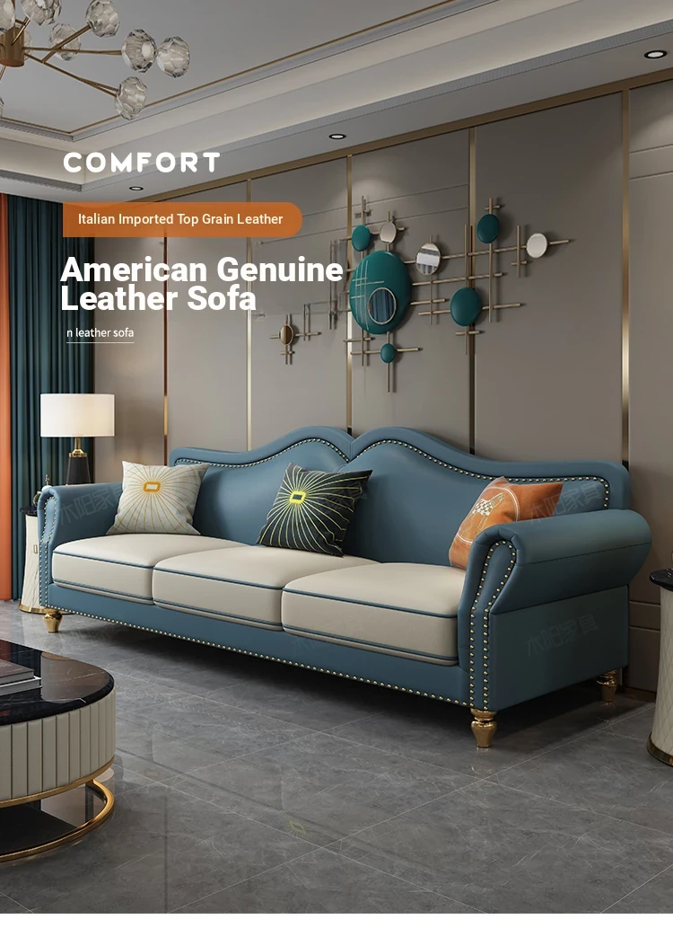 Elegant American Style Genuine Leather Sofa - Premium Top Grain Cowhide Living Room Sofa for Small Spaces, Perfect 3-Seater Combination for Your Home