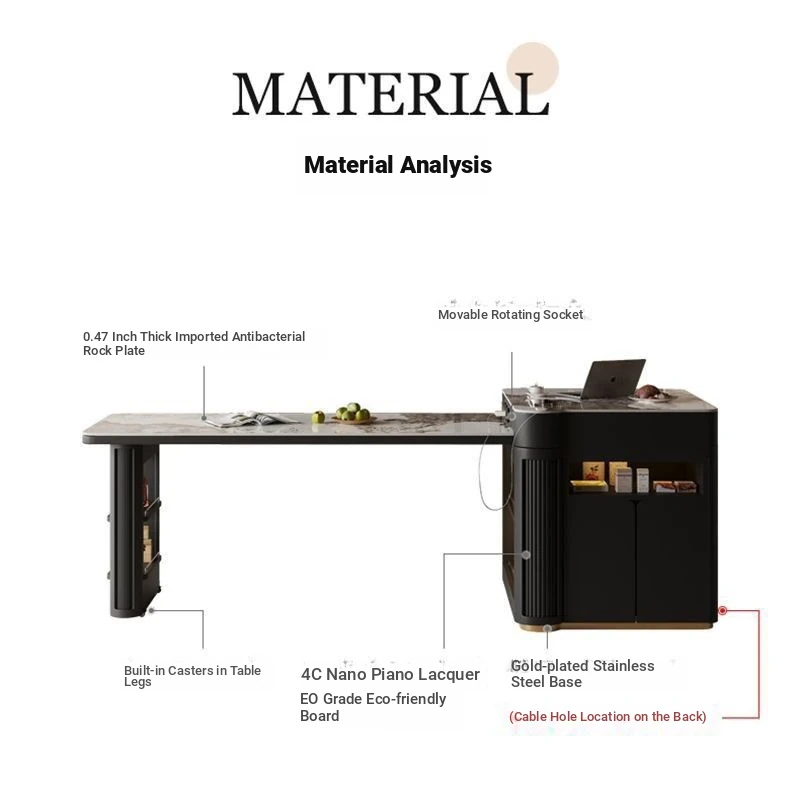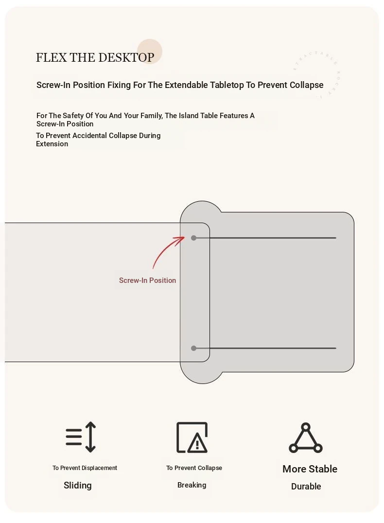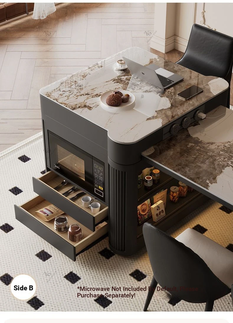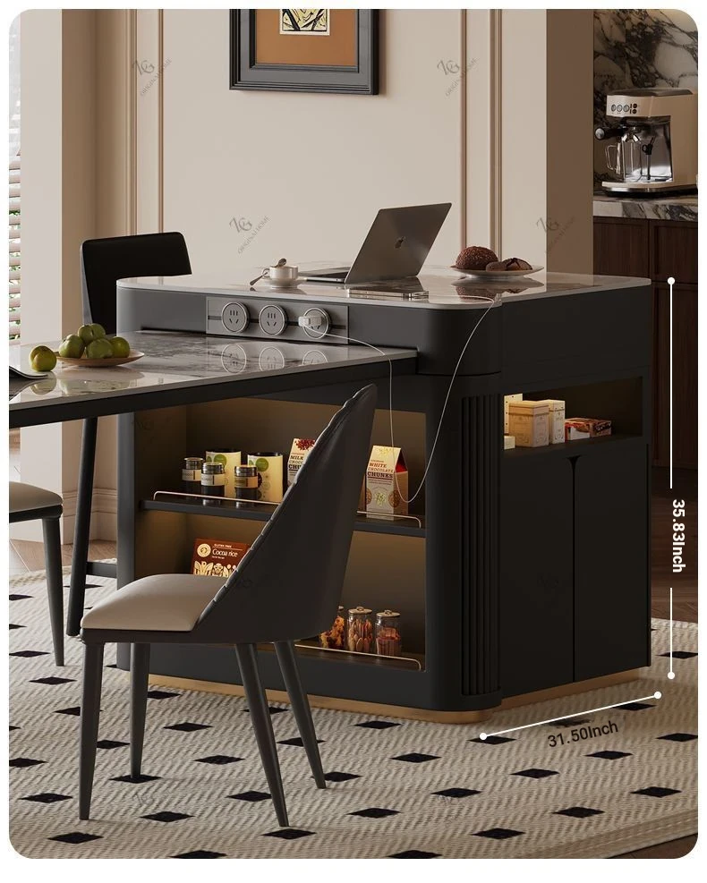 Italian-Style Expandable Kitchen Island Table - Modern Dining Table for Small Spaces, High-End Design for Home Use, Perfect for Dining Rooms