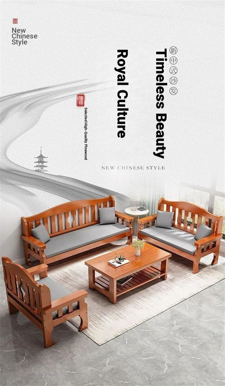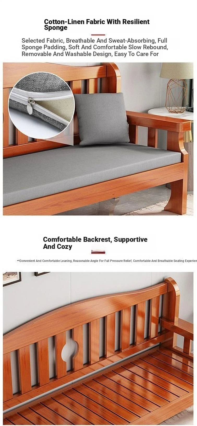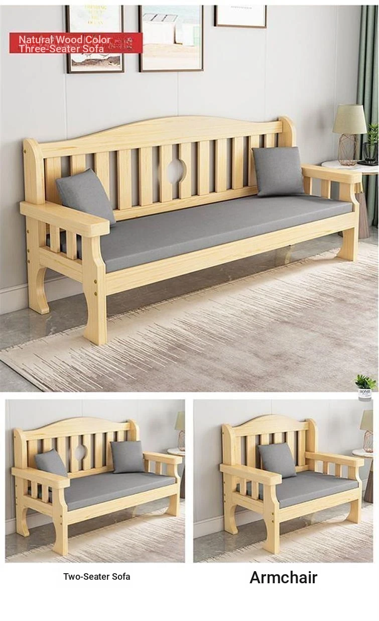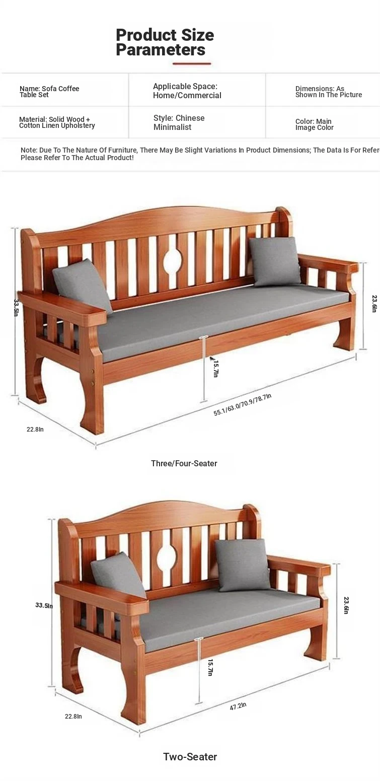Modern Minimalist Solid Wood Sofa Set for Small Living Rooms - Stylish Three-Seater Chinese-Style Wooden Bench with Backrest for Rural Homes