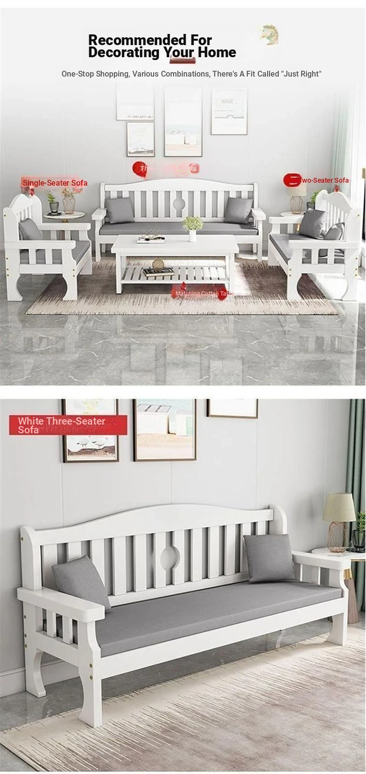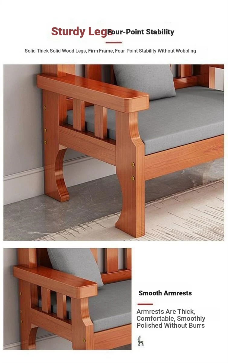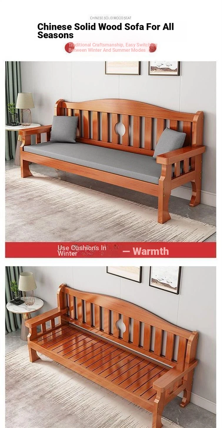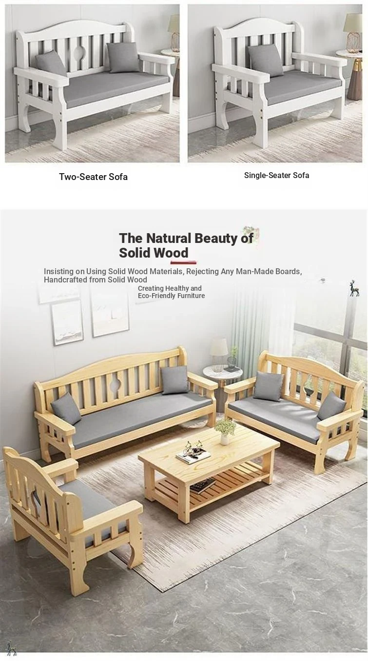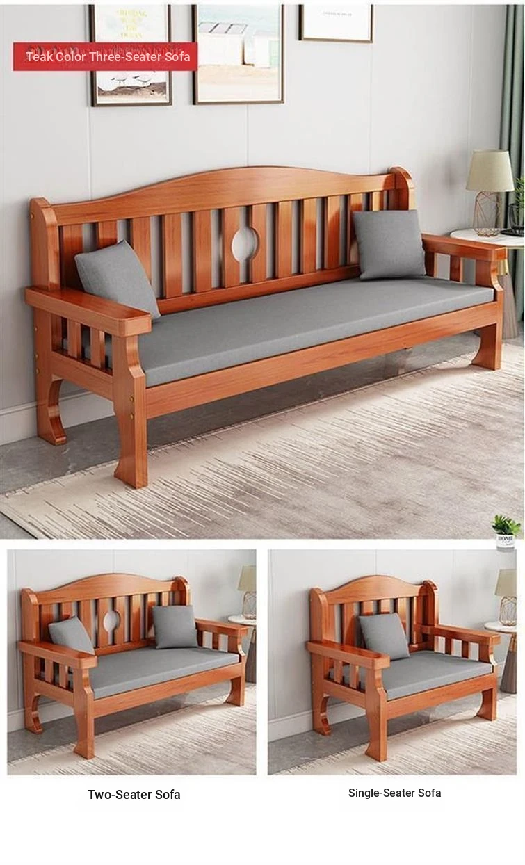 Modern Minimalist Solid Wood Sofa Set for Small Living Rooms - Stylish Three-Seater Chinese-Style Wooden Bench with Backrest for Rural Homes