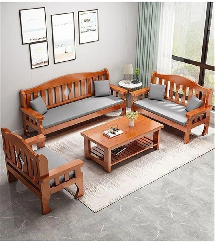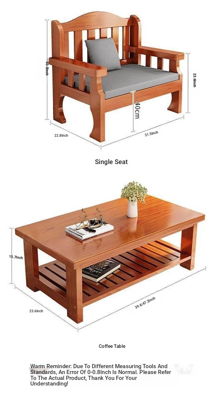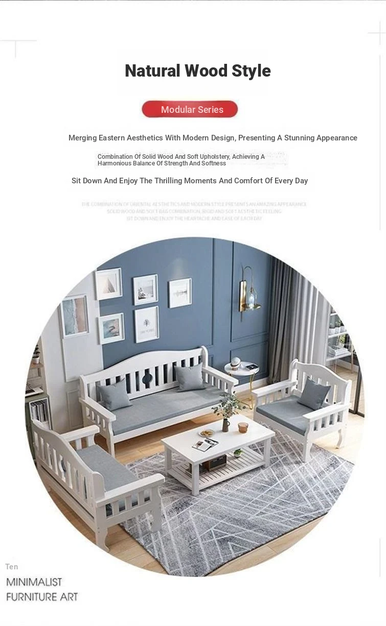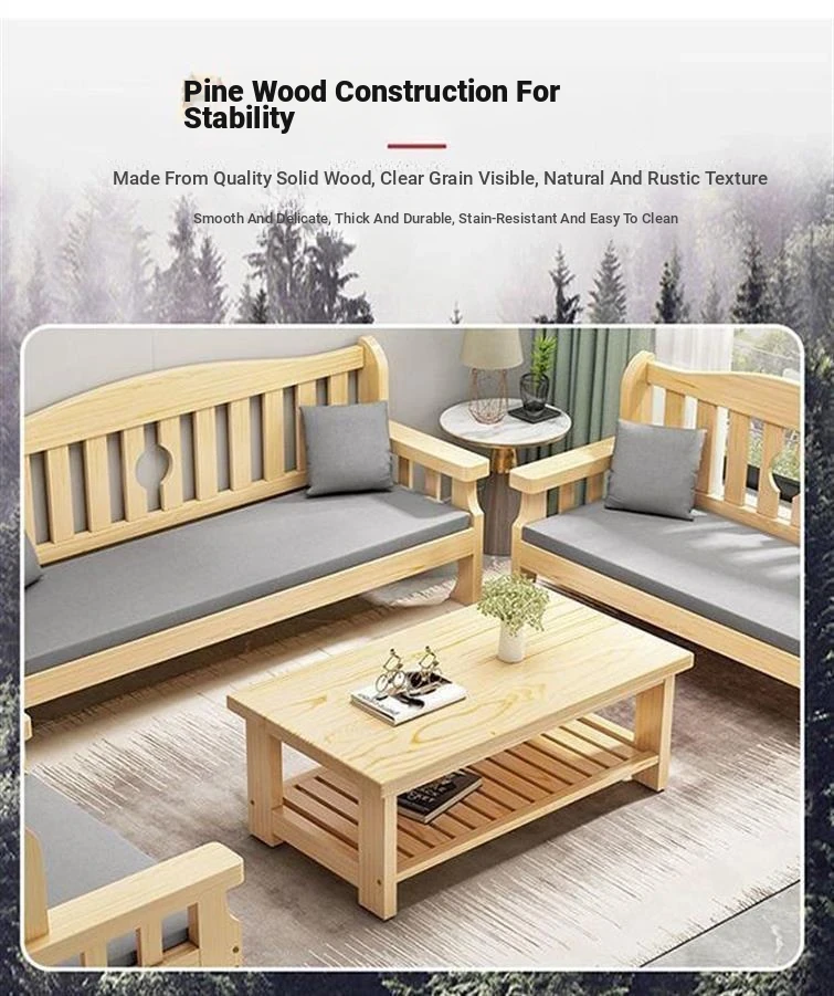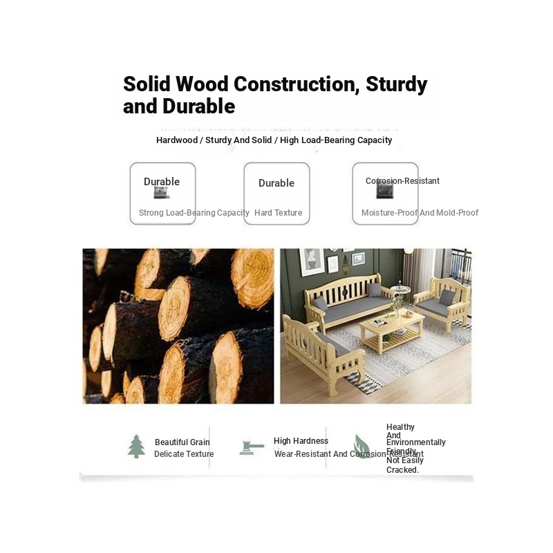 Modern Minimalist Solid Wood Sofa Set for Small Living Rooms - Stylish Three-Seater Chinese-Style Wooden Bench with Backrest for Rural Homes