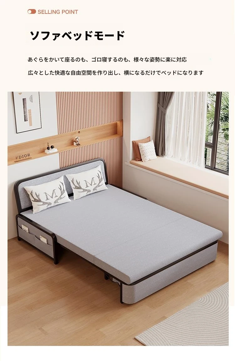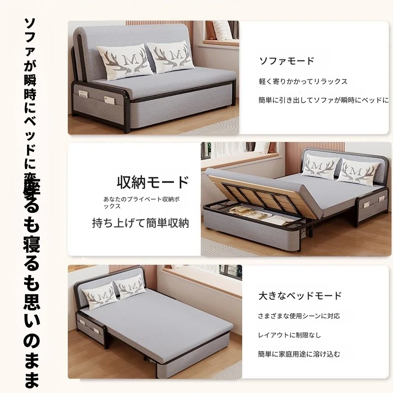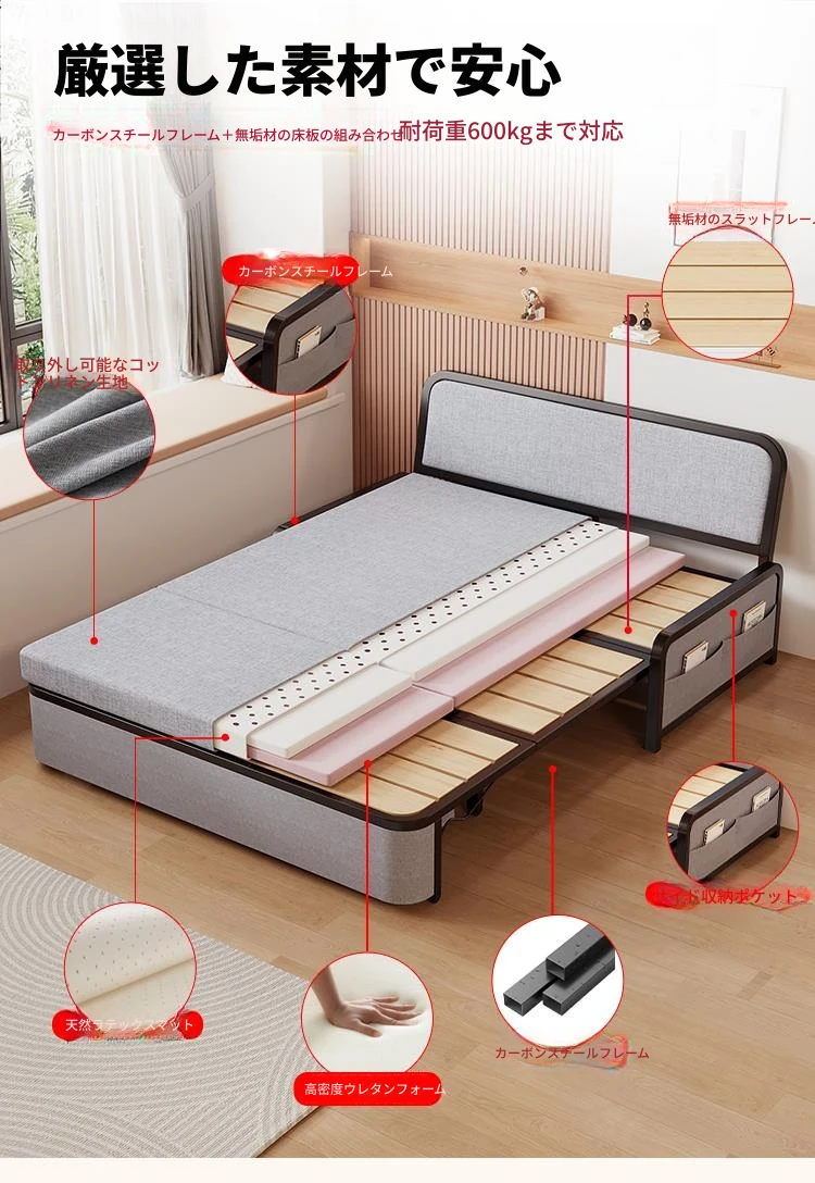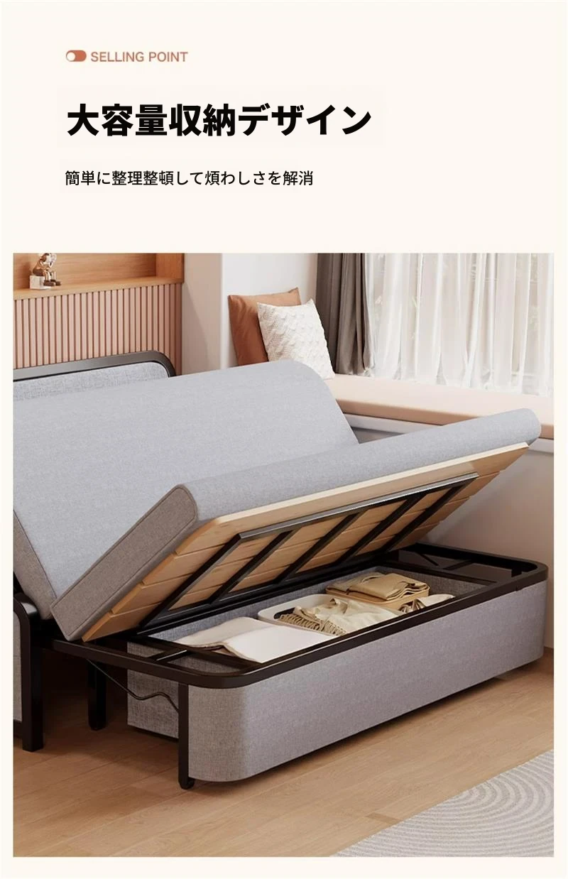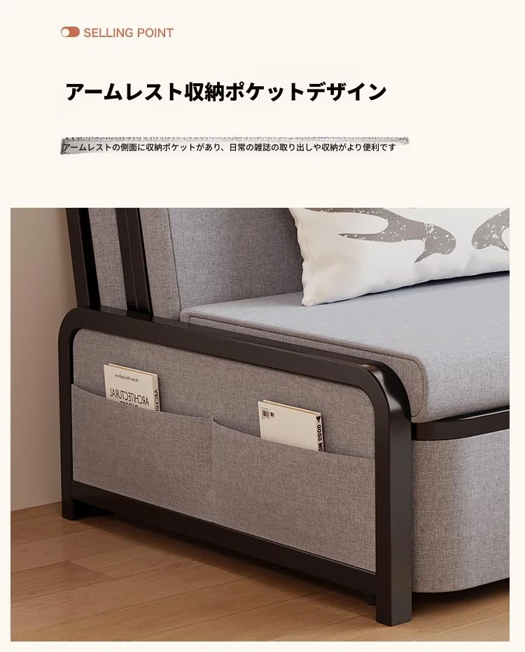 2024年新作!折りたたみソファベッド - 小型リビング向け、シンプルで多機能、引き出し式、アームレストなしのスリムデザイン!快適空間を実現する理想的な選択です!
