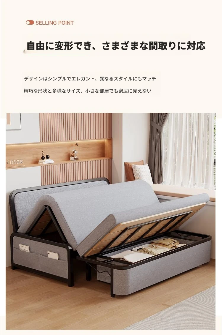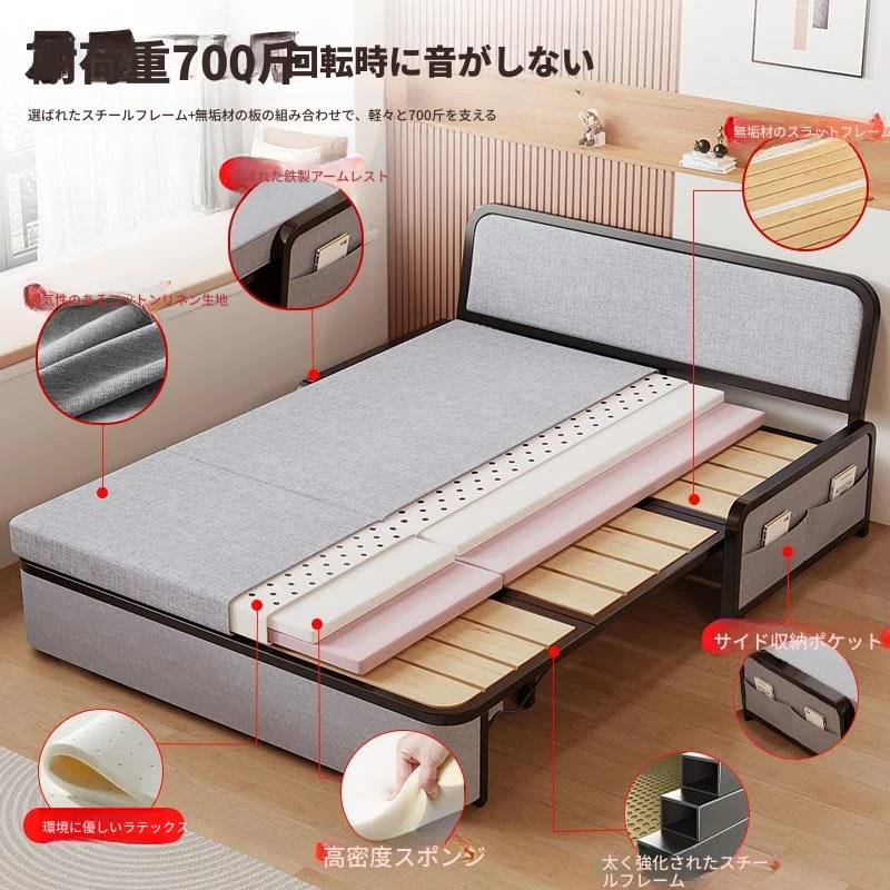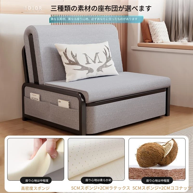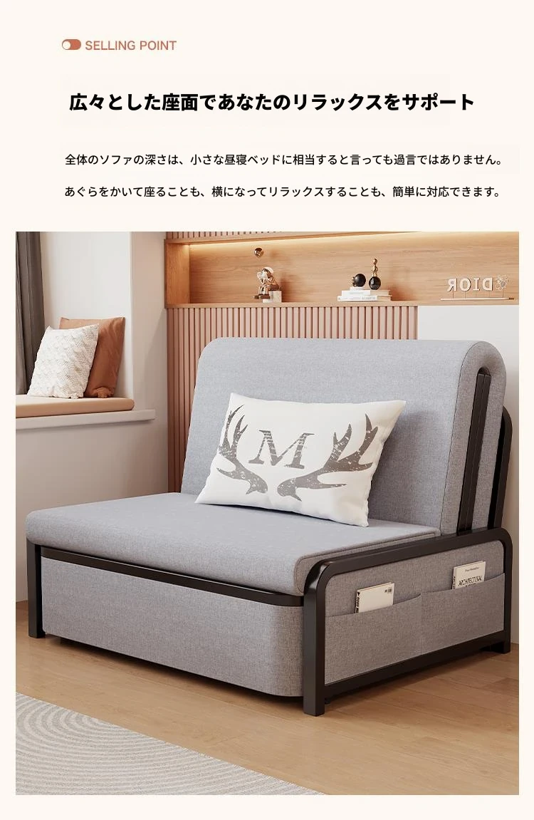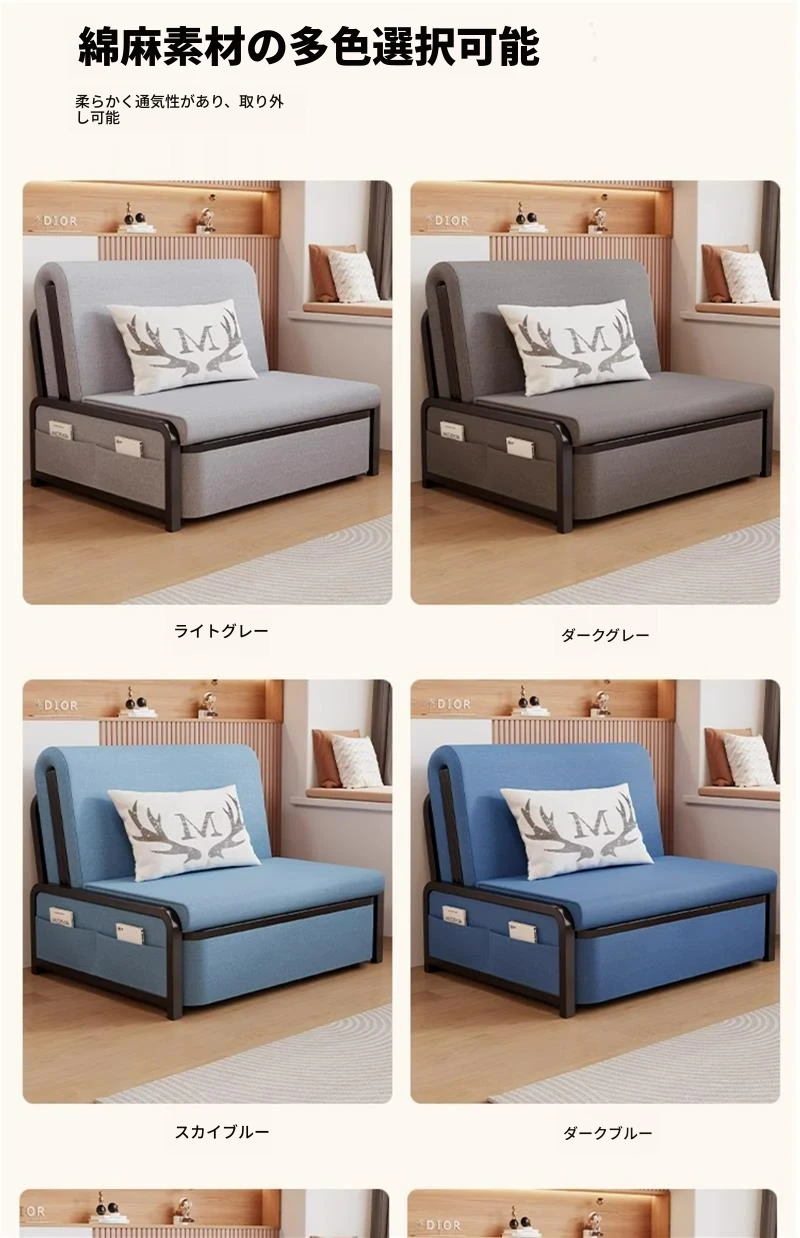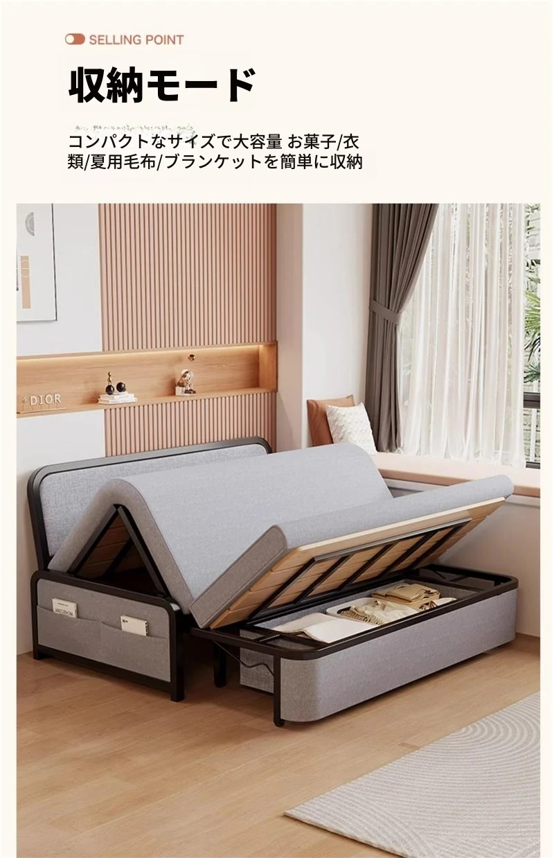 2024年新作!折りたたみソファベッド - 小型リビング向け、シンプルで多機能、引き出し式、アームレストなしのスリムデザイン!快適空間を実現する理想的な選択です!