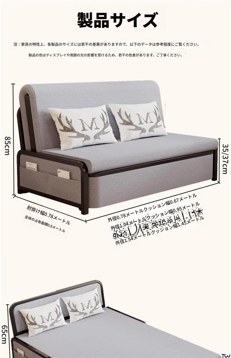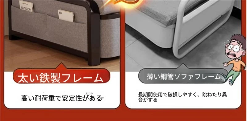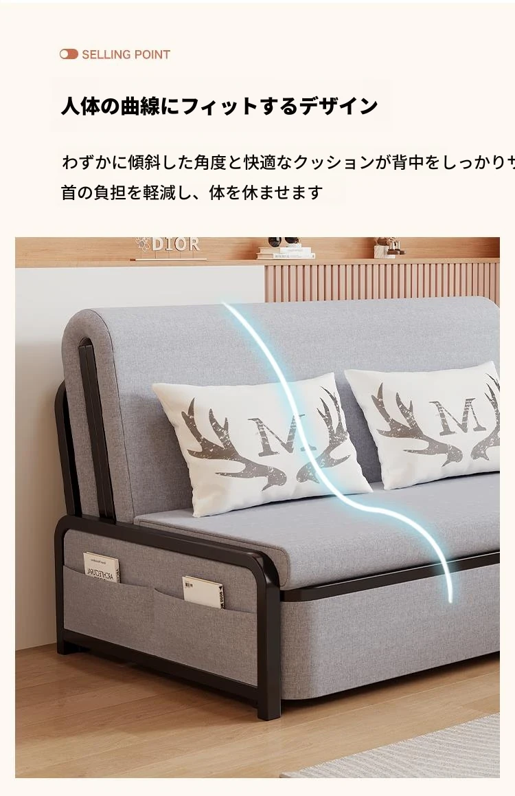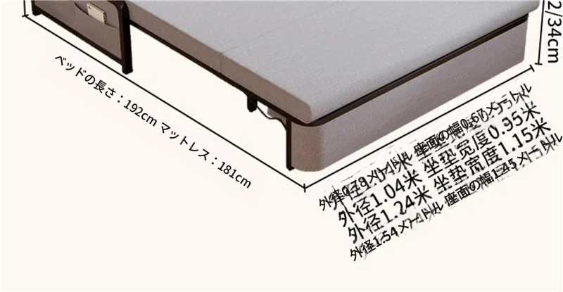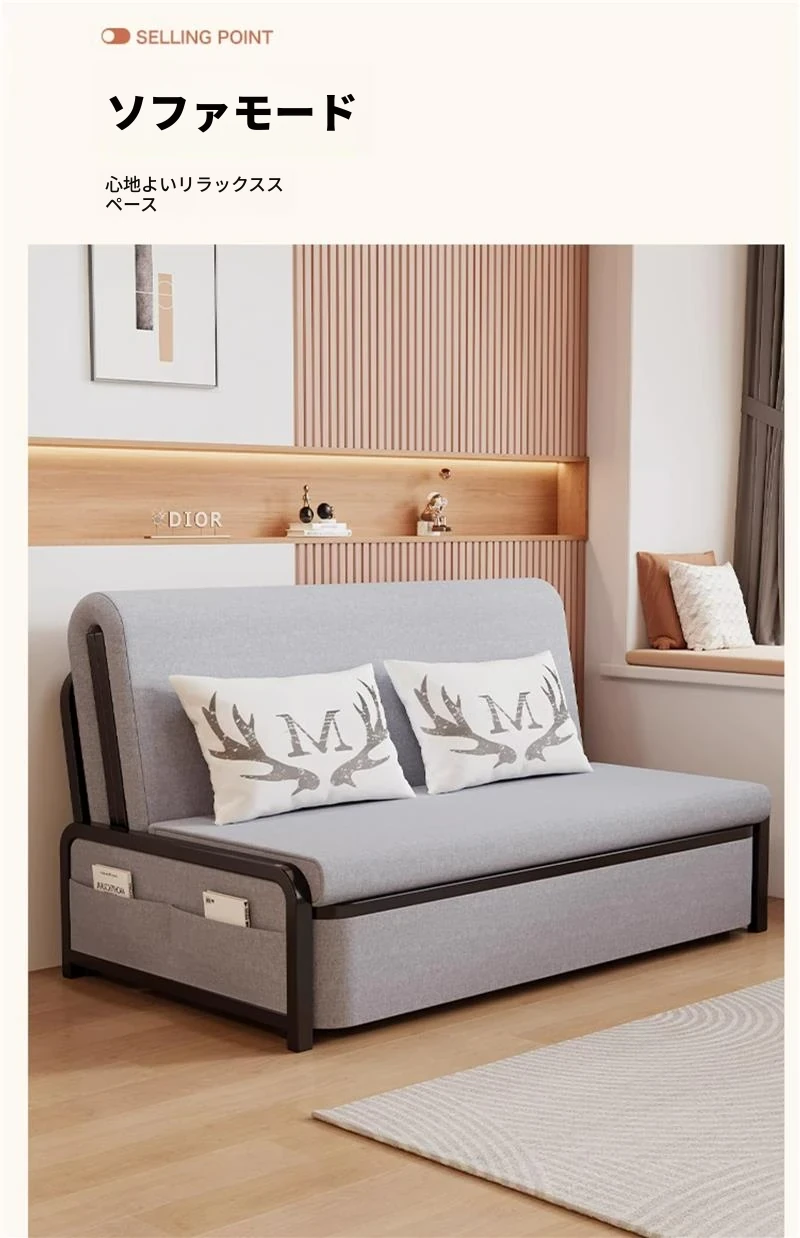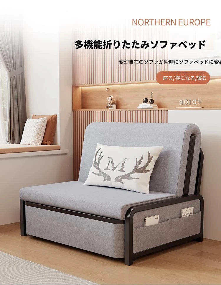 2024年新作!折りたたみソファベッド - 小型リビング向け、シンプルで多機能、引き出し式、アームレストなしのスリムデザイン!快適空間を実現する理想的な選択です!