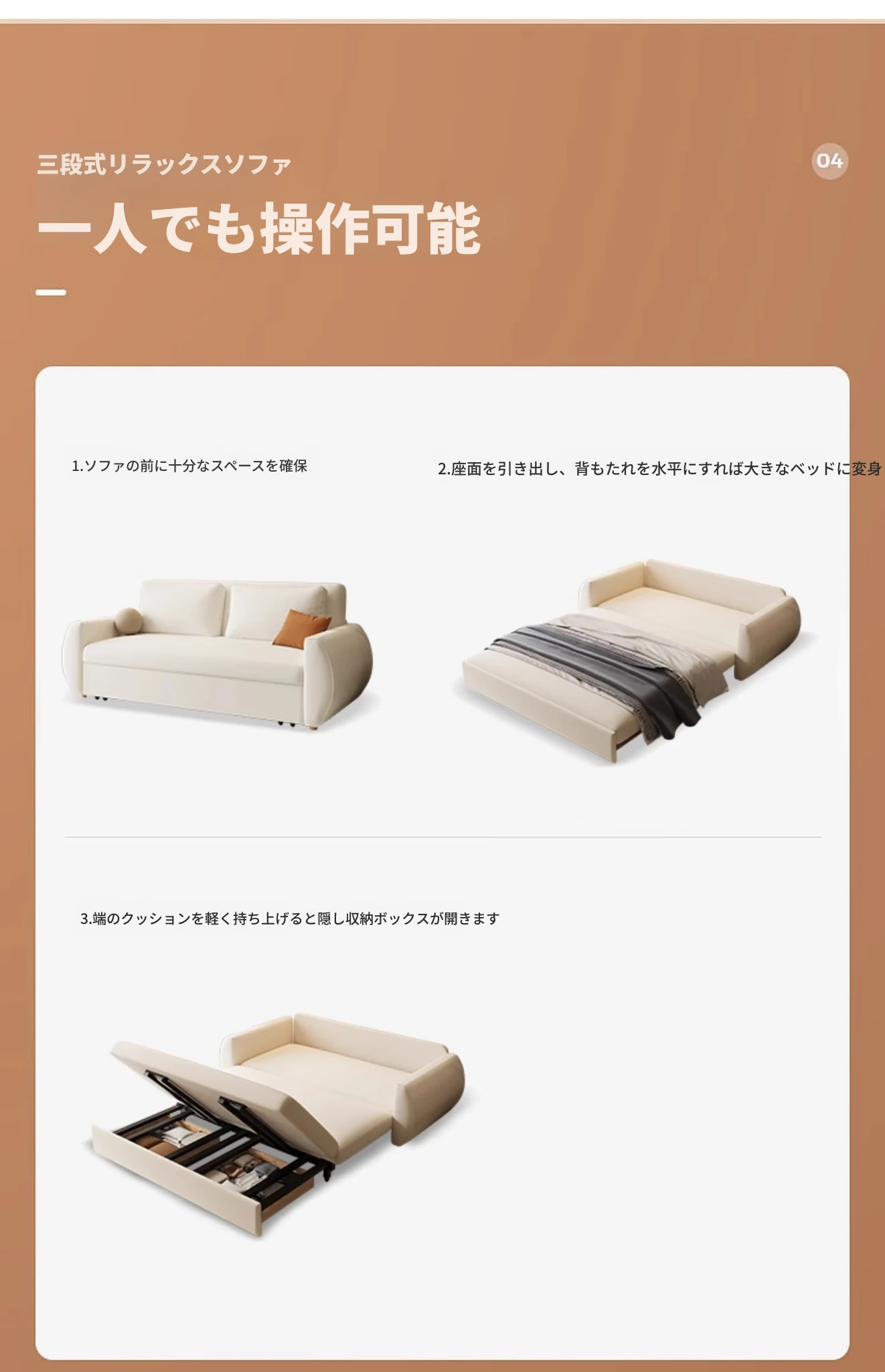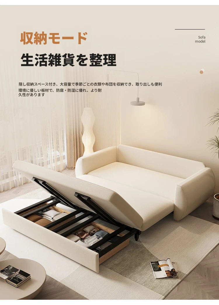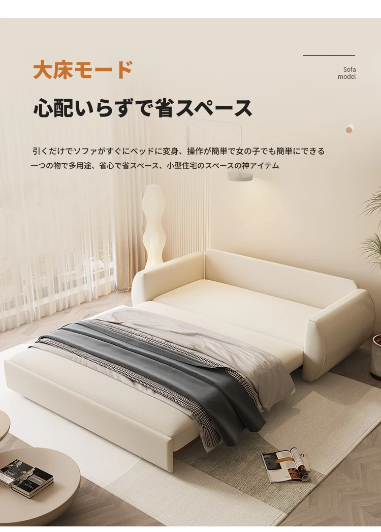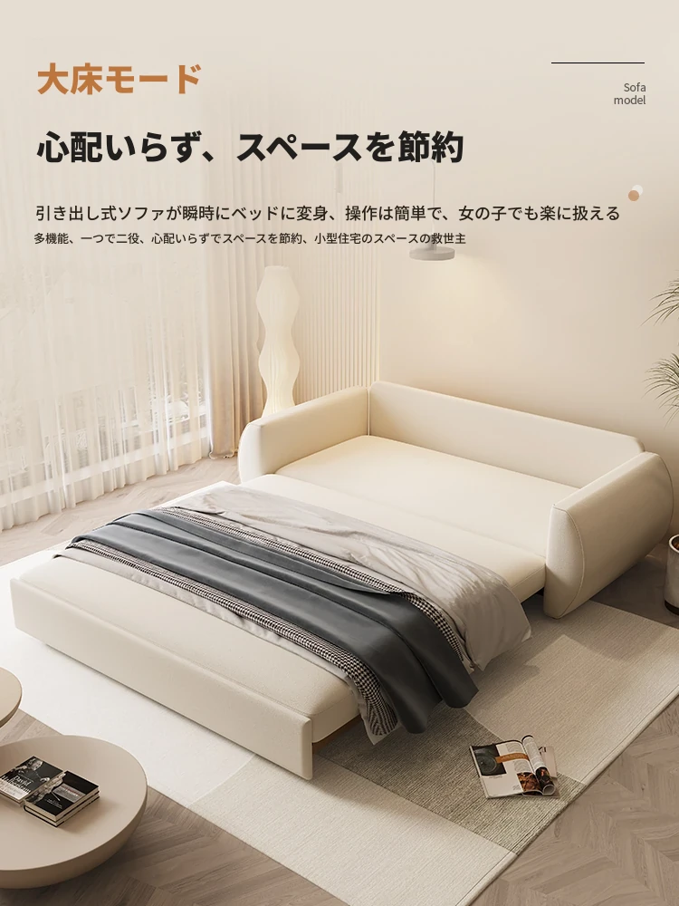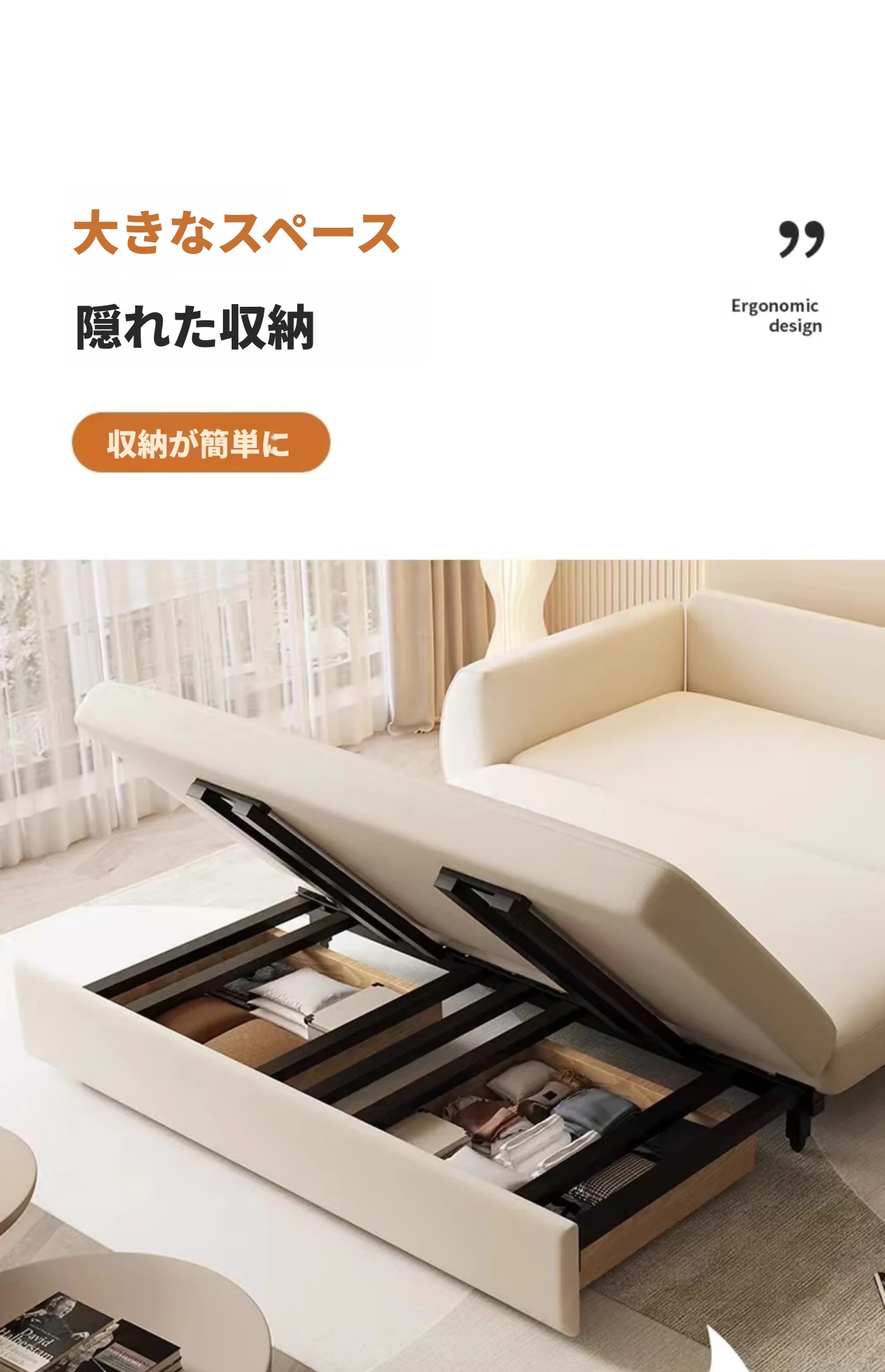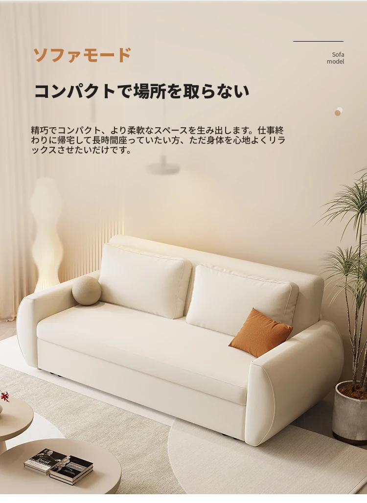 クリーム風ソファベッド 引き出し式 二役 リビング向け コンパクト 多機能 伸縮可能 ダブルサイズ 2024年新モデル 折りたたみベッド