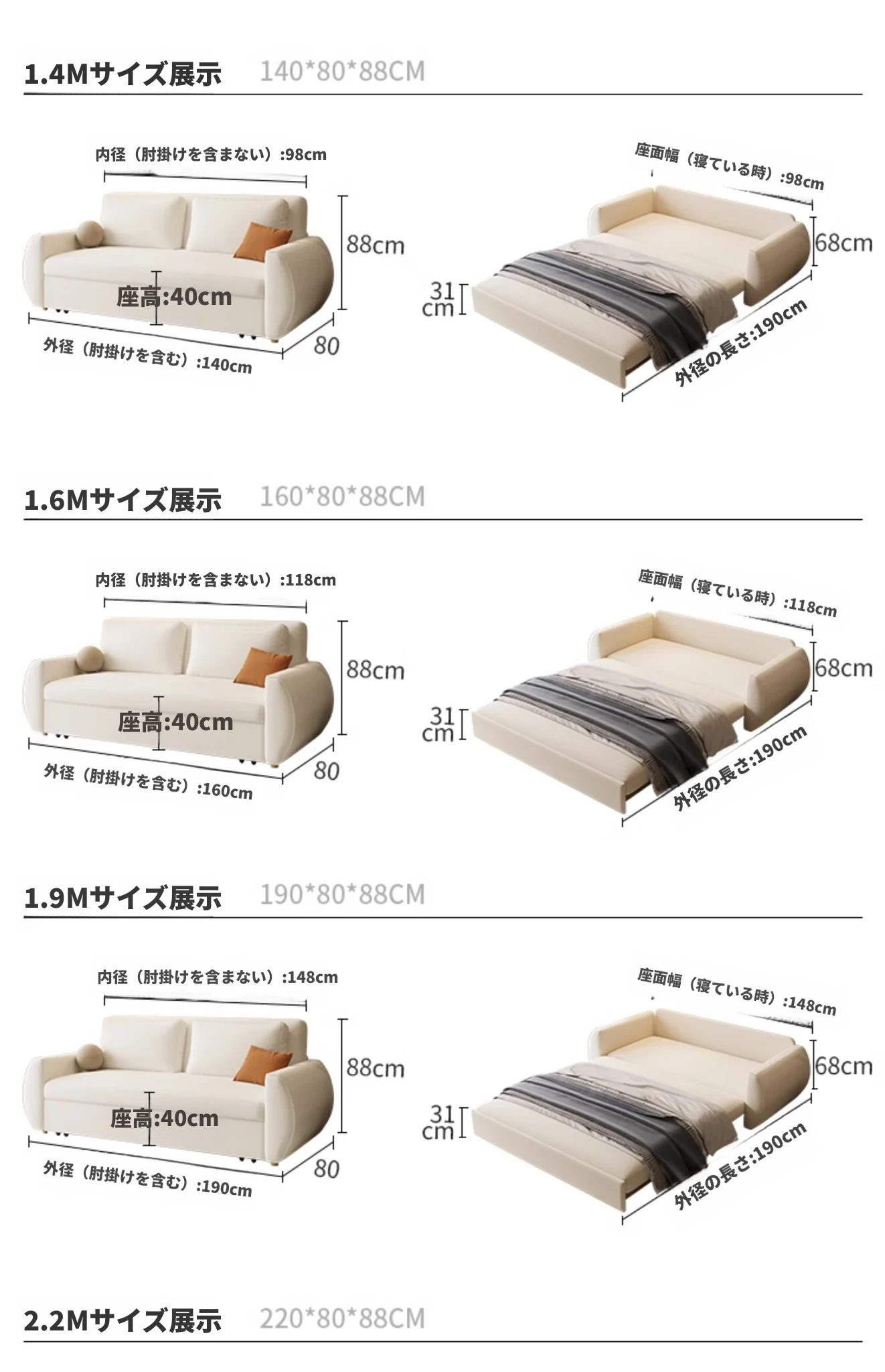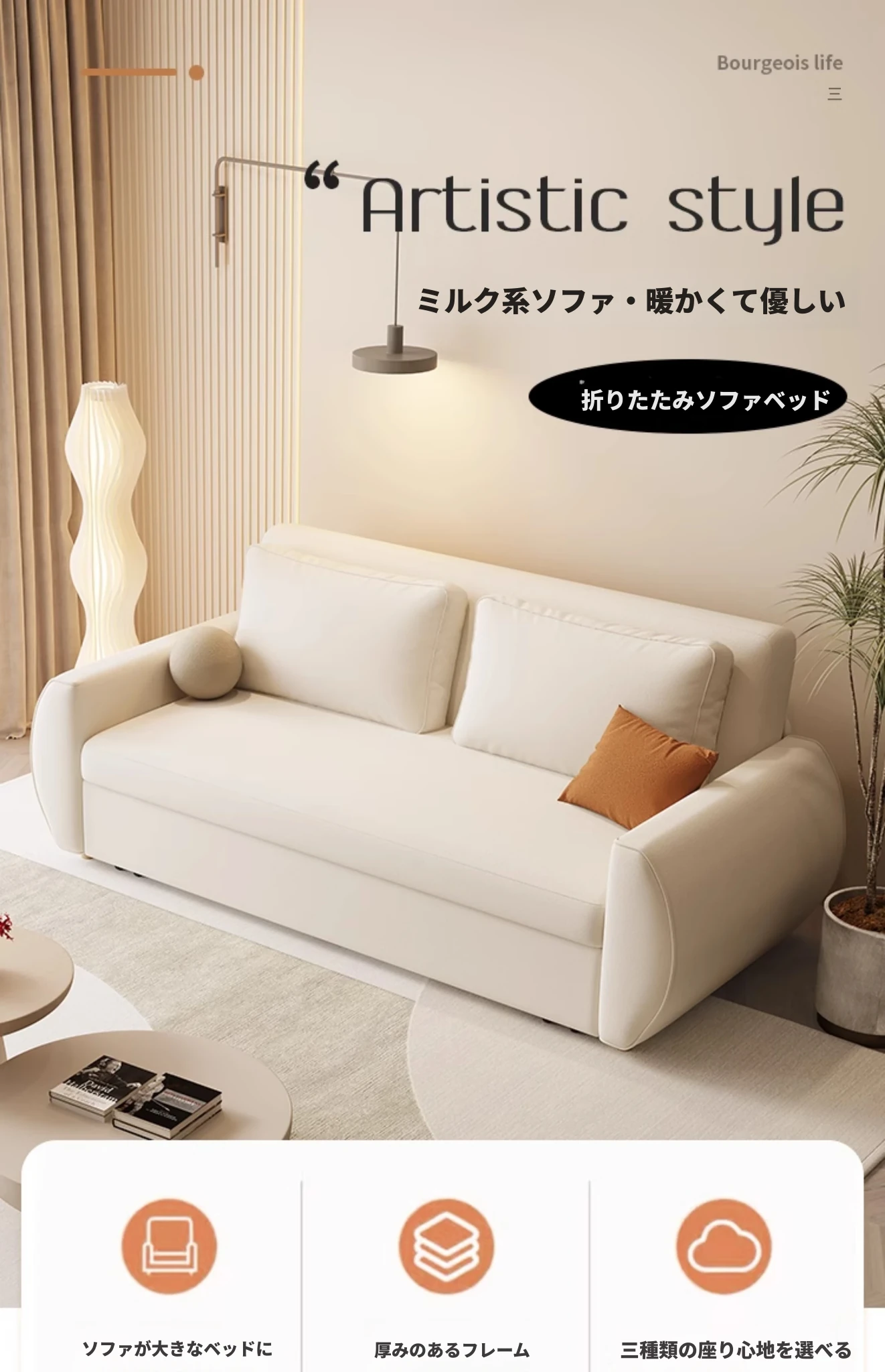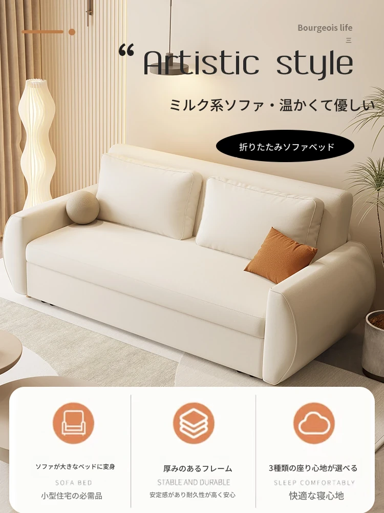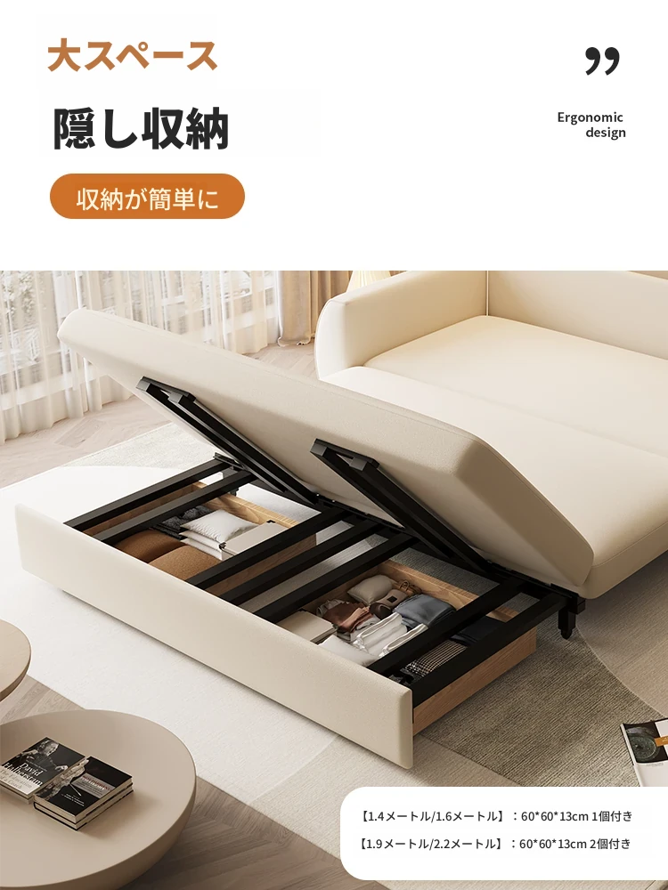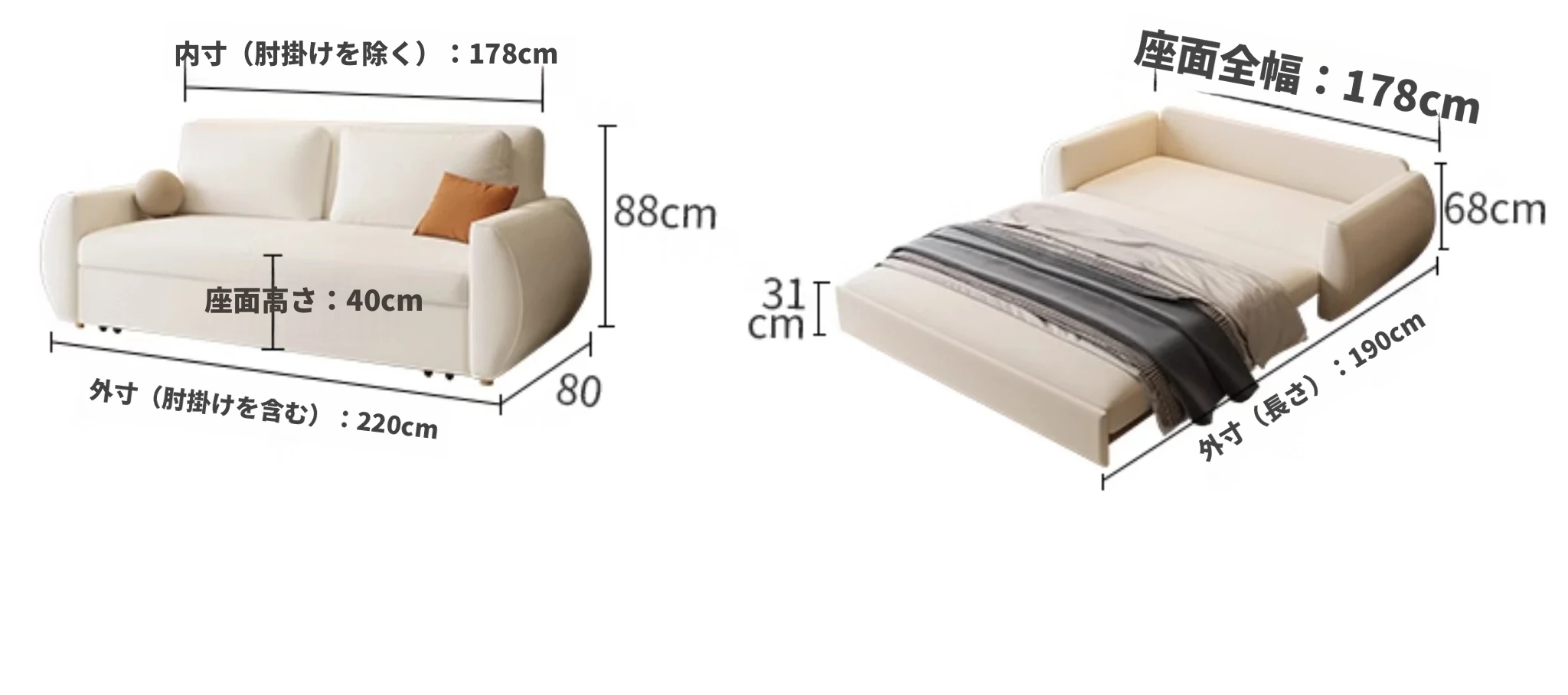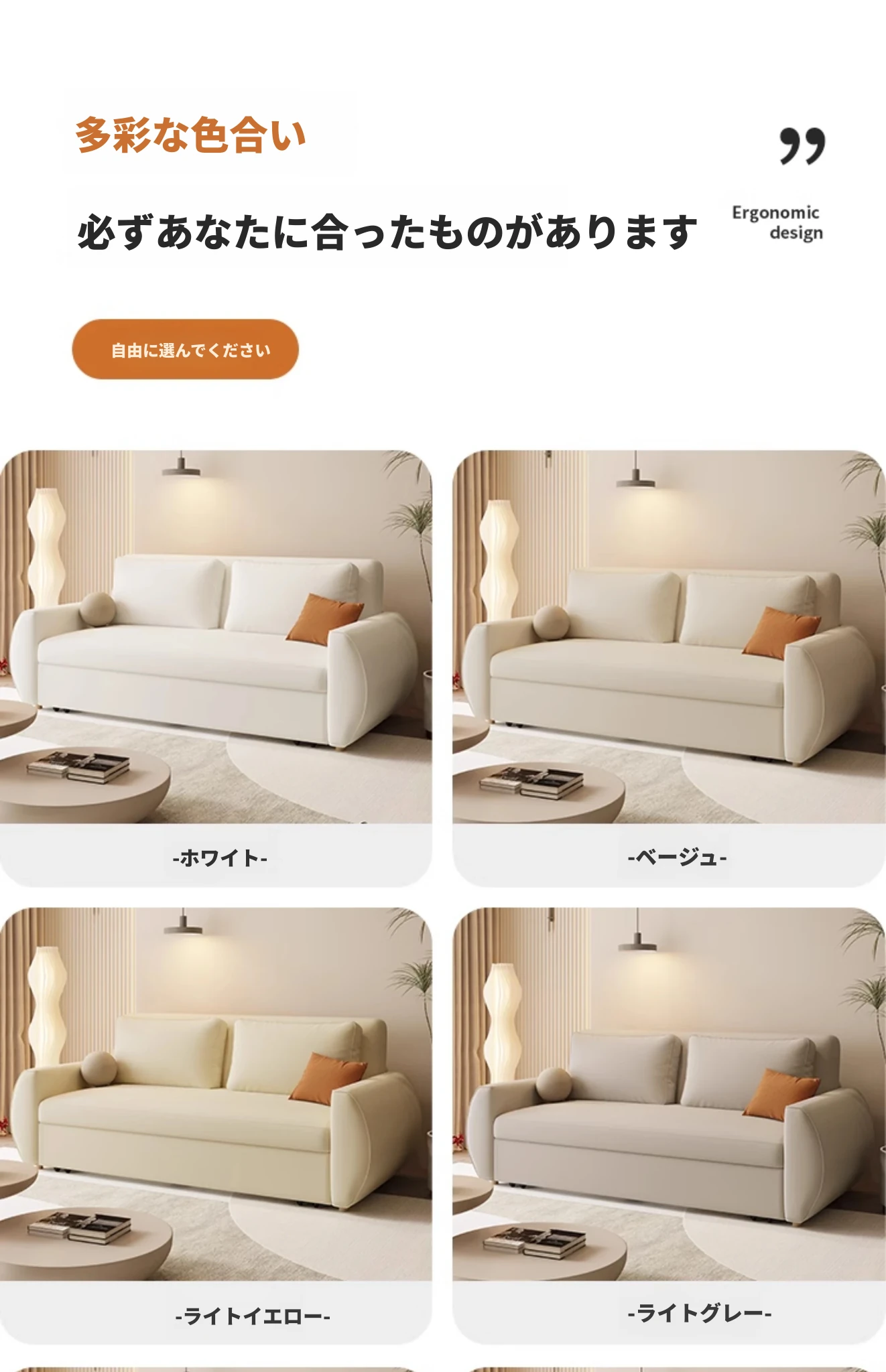 クリーム風ソファベッド 引き出し式 二役 リビング向け コンパクト 多機能 伸縮可能 ダブルサイズ 2024年新モデル 折りたたみベッド