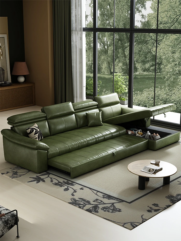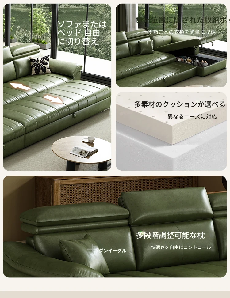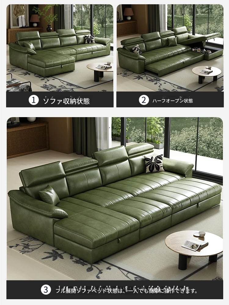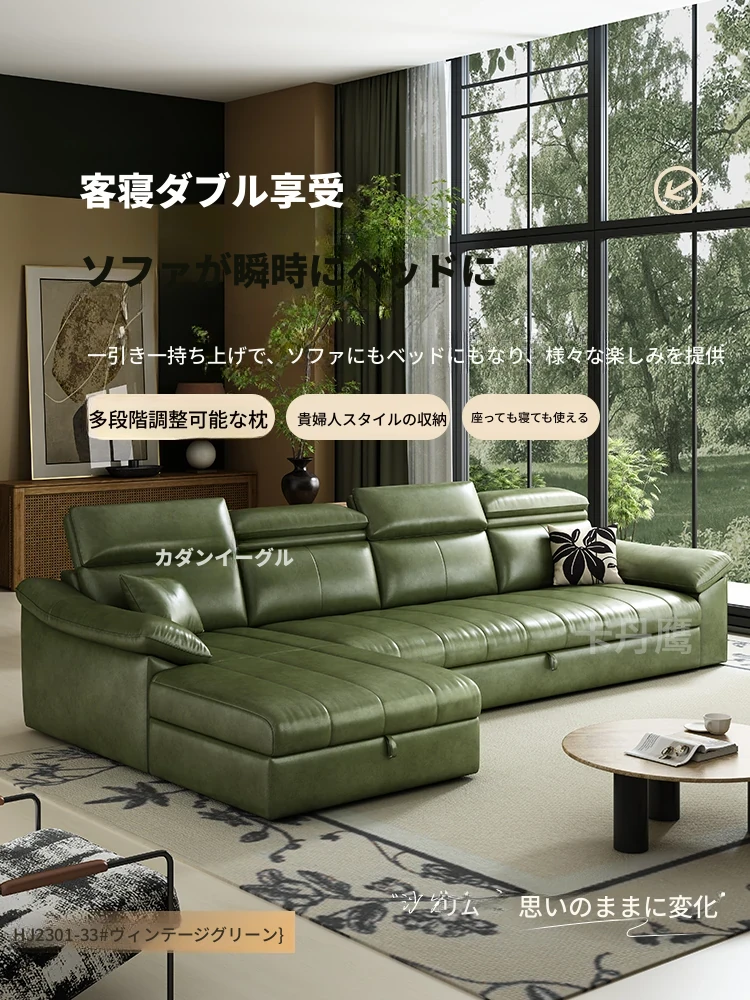 2025年新作!折りたたみ式貴妃椅ソファベッド—レトロなオイルワックスレザー使用、リビングにぴったりの2WAYデザインで、快適さとスタイルを両立!伸縮機能で狭いスペースでも大活躍!