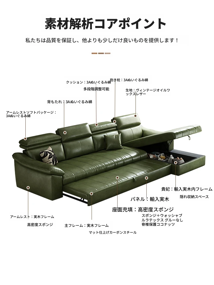 4.1メートル3人用+3人用ストレートタイプ オイルワックス本革