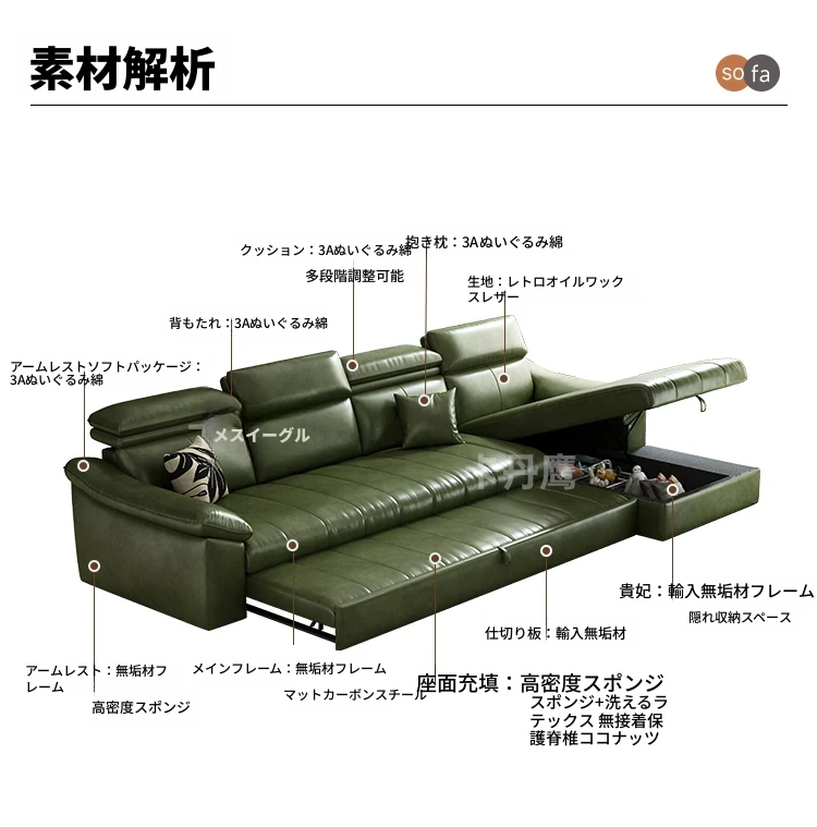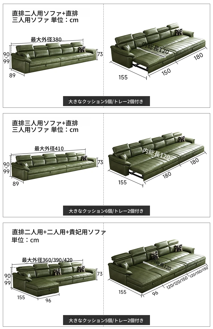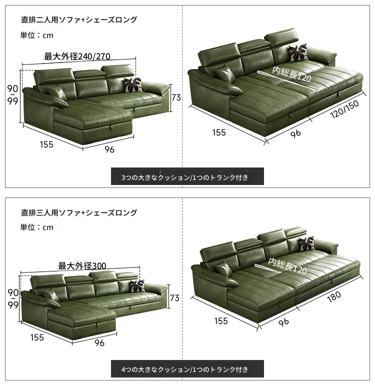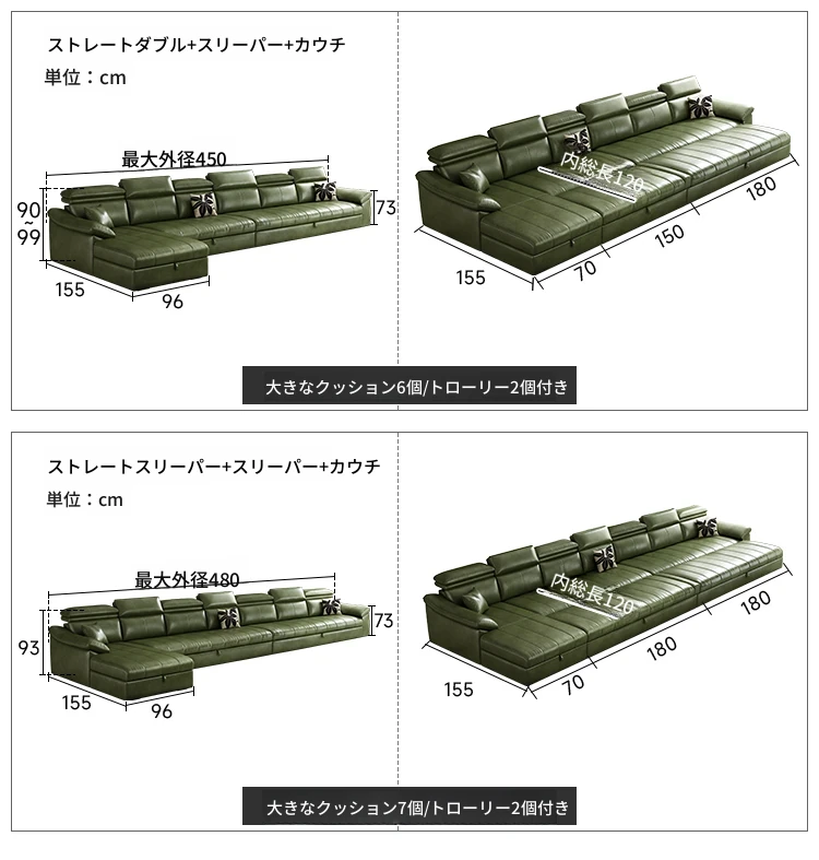 4.80メートル3人用+3人用+フェイスタイプ オイルワックス本革