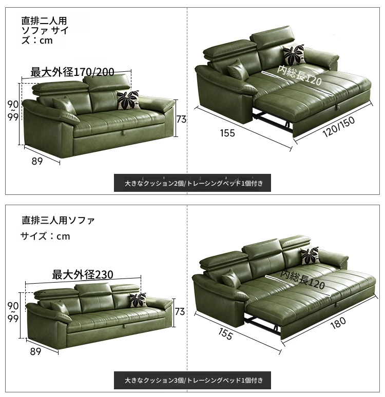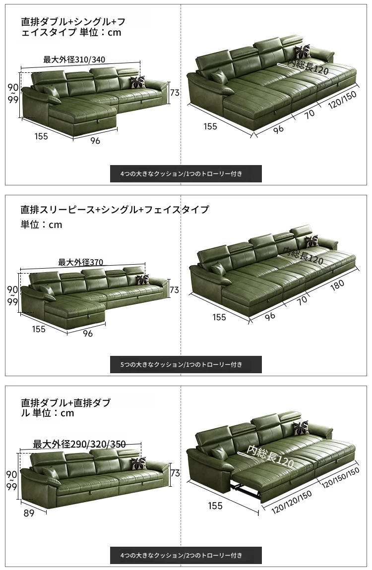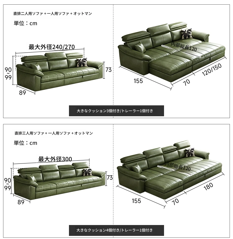 3.60メートル2人用+2人用+フェイスタイプ オイルワックス本革