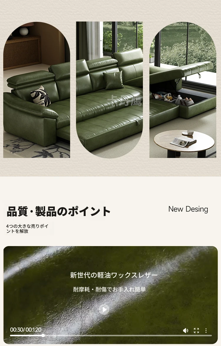 3.0メートル3人用+フェイスタイプ オイルワックス本革