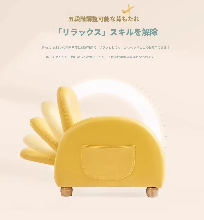 イエローソファ+オットマン【洗濯不要の猫爪皮 五段調整】