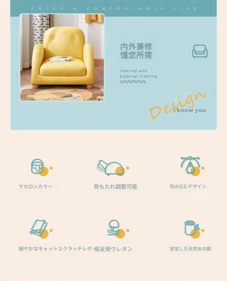 イエローソファ【洗濯不要の猫爪皮 五段調整】