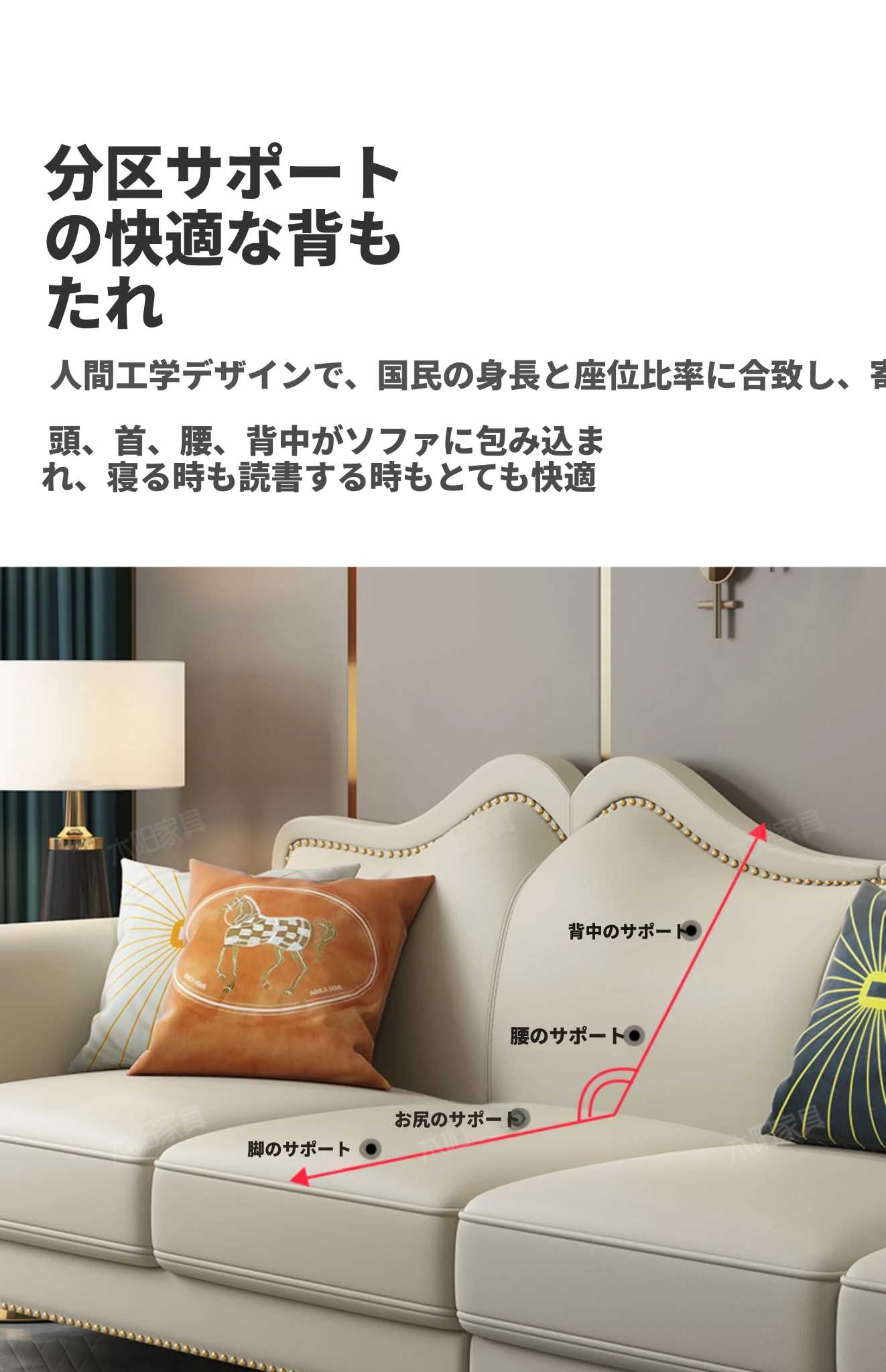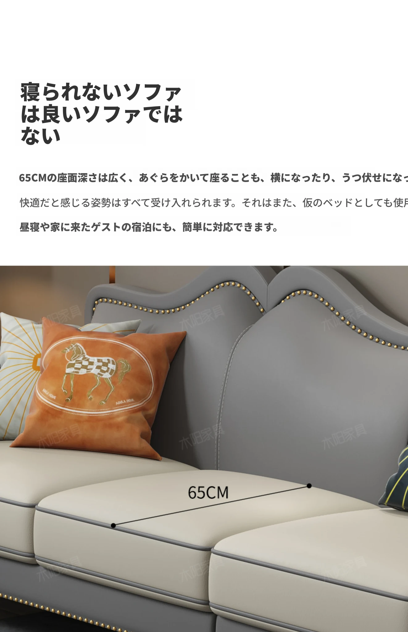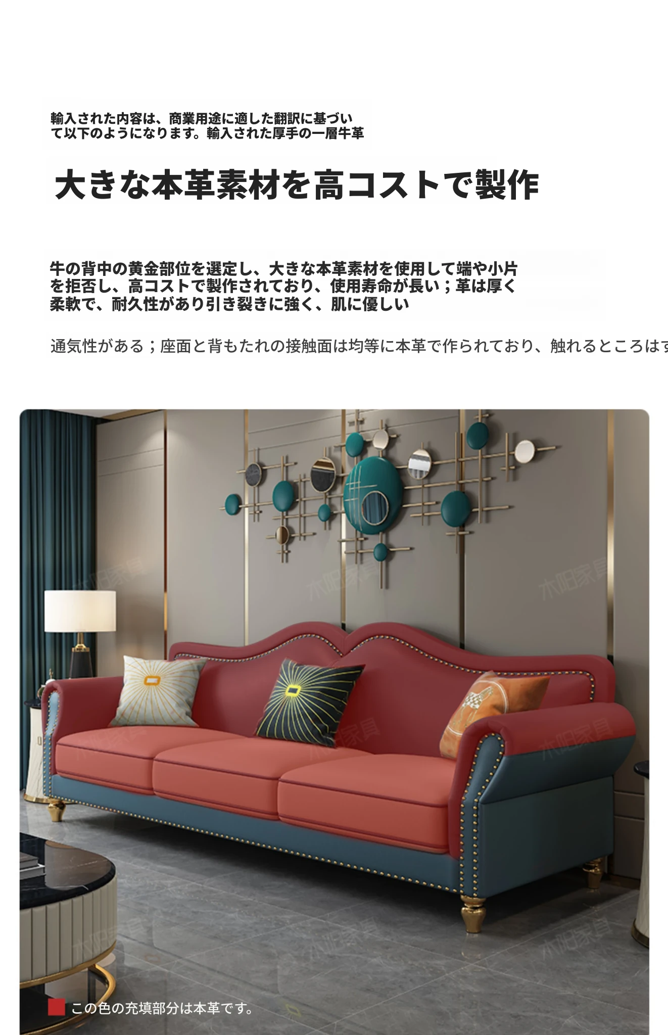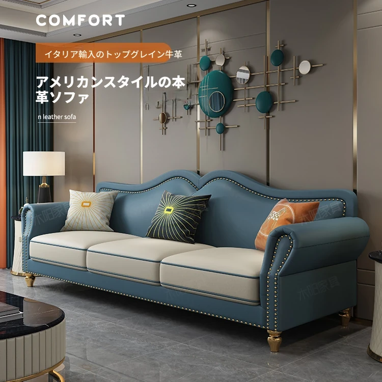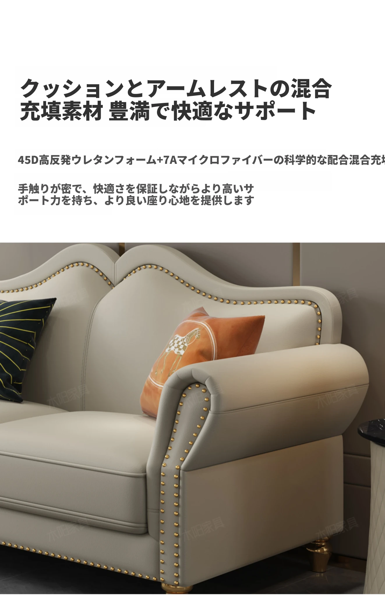 アメリカンスタイルのラグジュアリー本革ソファ - 高品質なトップグレイン牛革使用、コンパクトなリビングに最適な3人掛けソファセットで、スタイリッシュな空間を演出します!