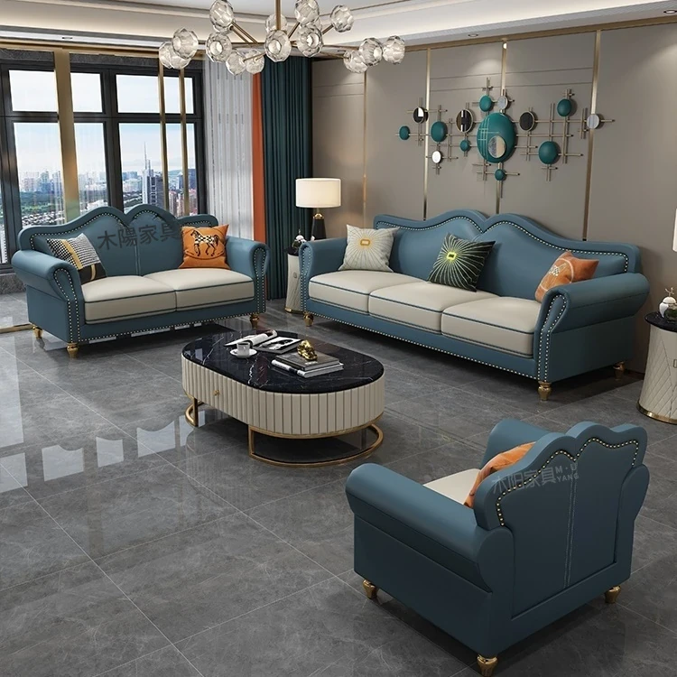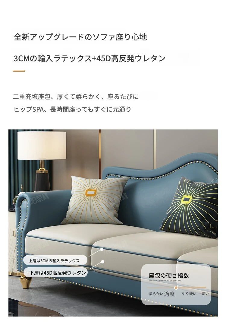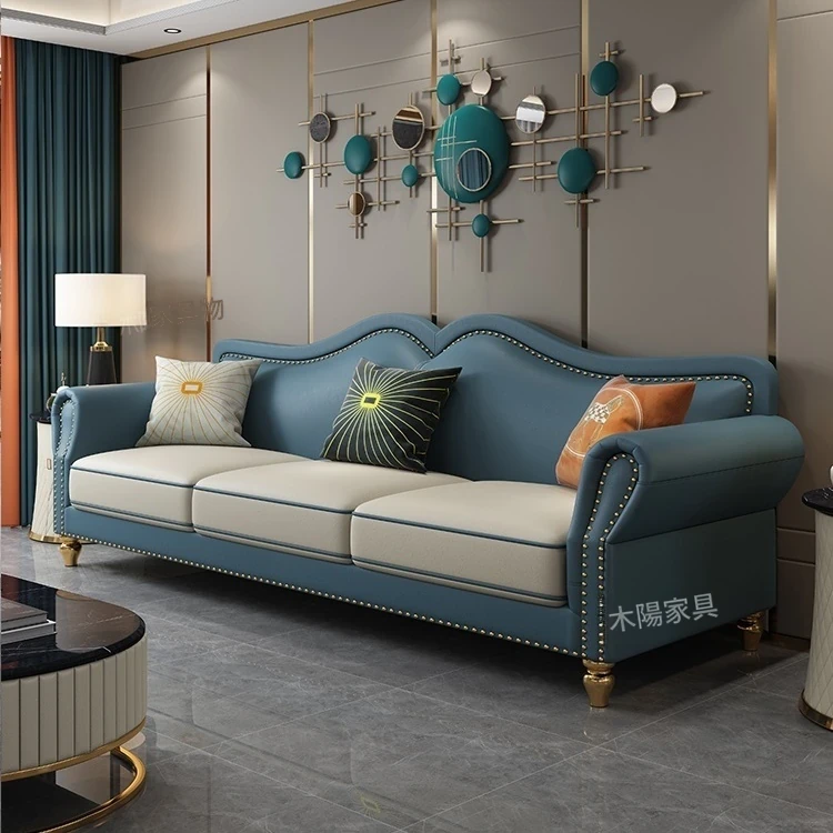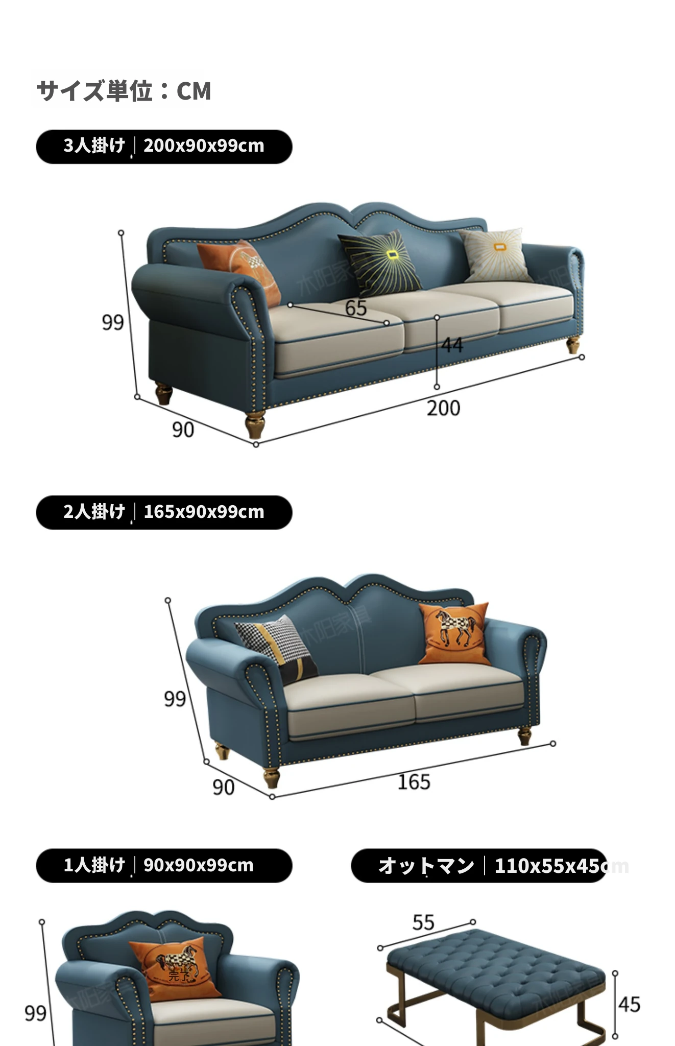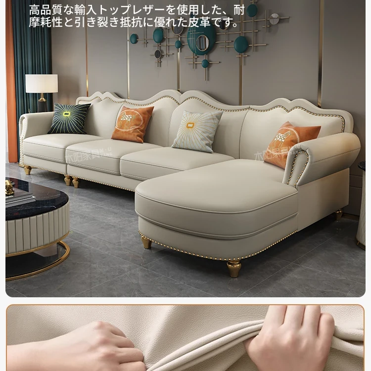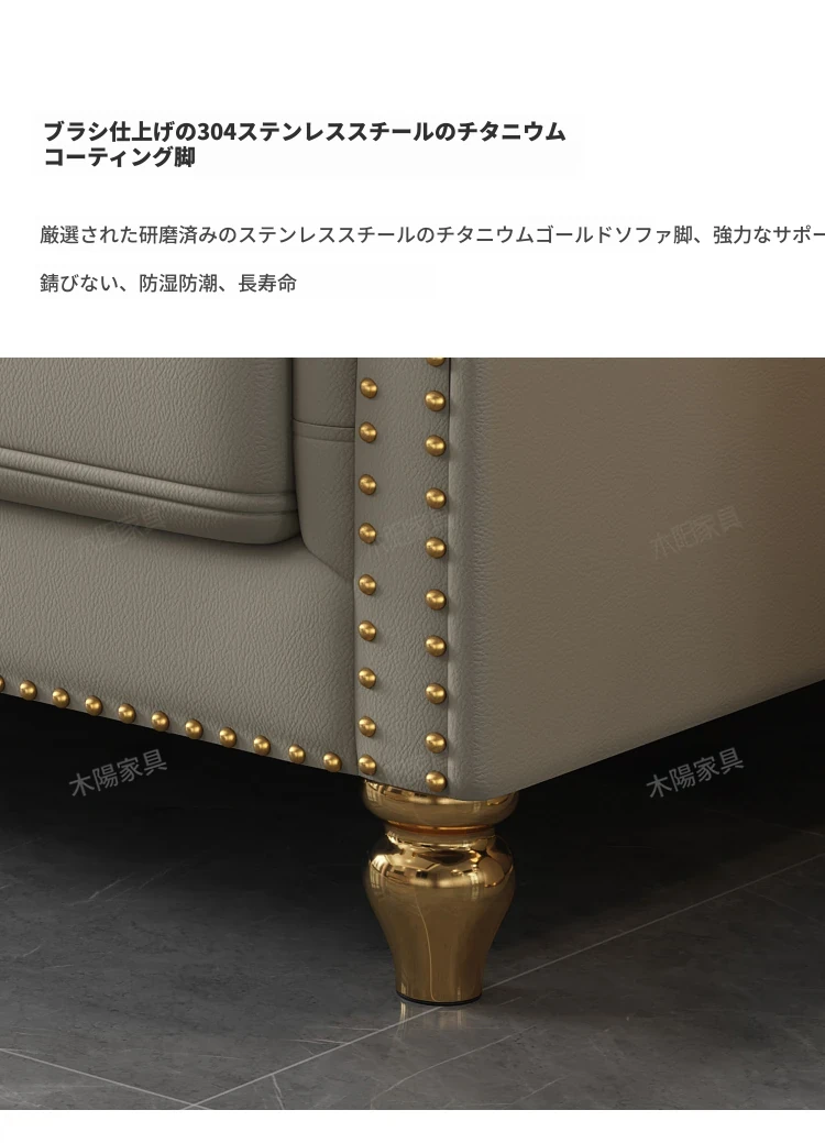 アメリカンスタイルのラグジュアリー本革ソファ - 高品質なトップグレイン牛革使用、コンパクトなリビングに最適な3人掛けソファセットで、スタイリッシュな空間を演出します!
