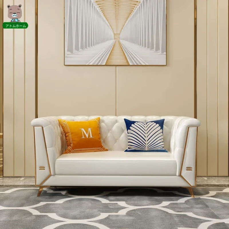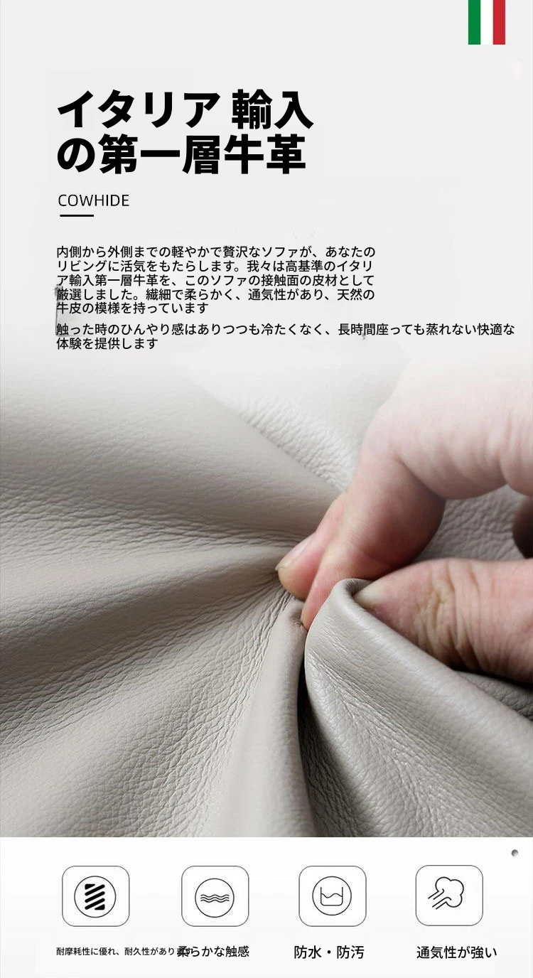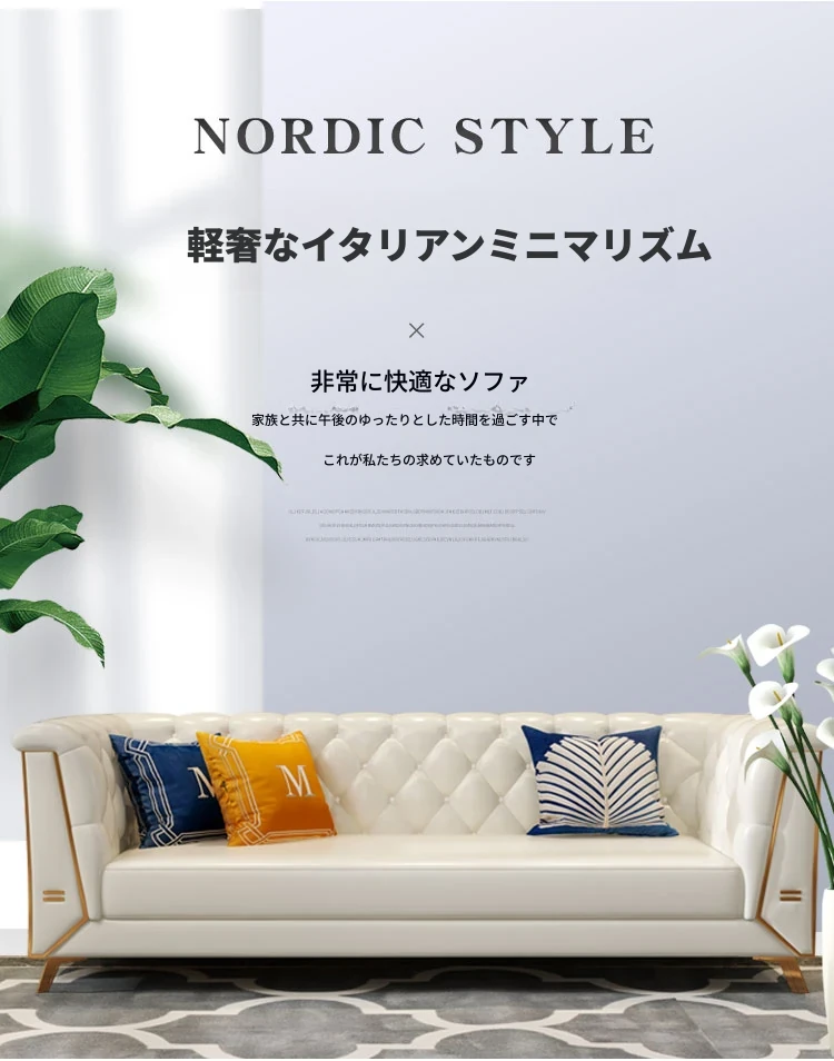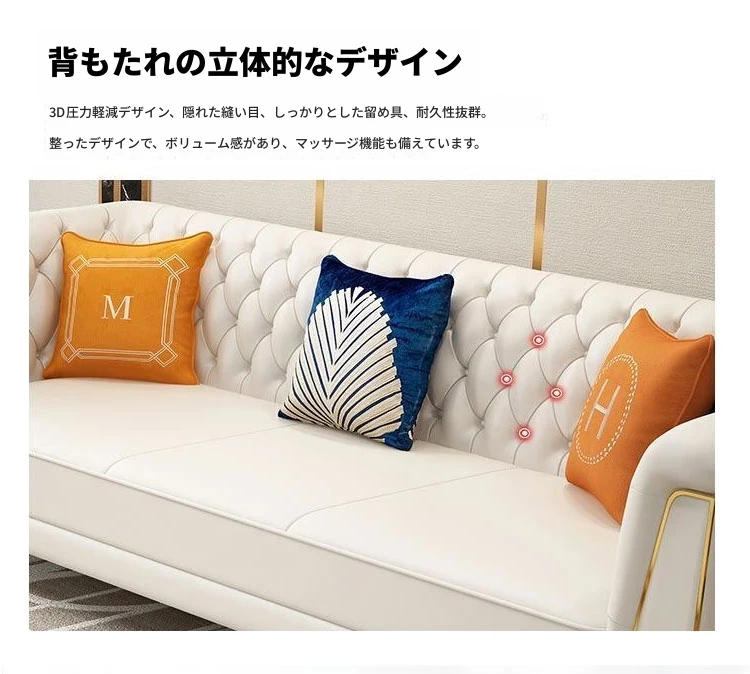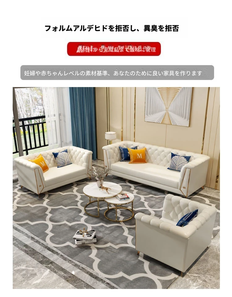 ラグジュアリーなクリーム色の高級リビングソファ!本革製の小型3人掛け&4人掛けコンビネーションソファで、白を基調とした洗練されたデザイン。おしゃれな空間を演出し、快適なひとときを提供します。