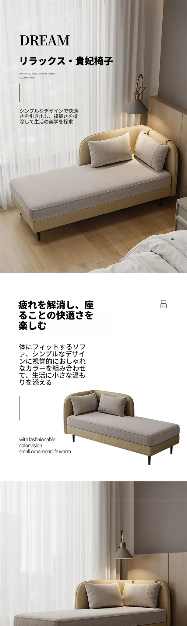 軽やかで贅沢な中古侘寂スタイルの貴妃椅子 - モダンでシンプル、小スペースに最適なリビングルームや寝室用のリラックスチェア、美しいデザインで心地よいひとときを演出します。