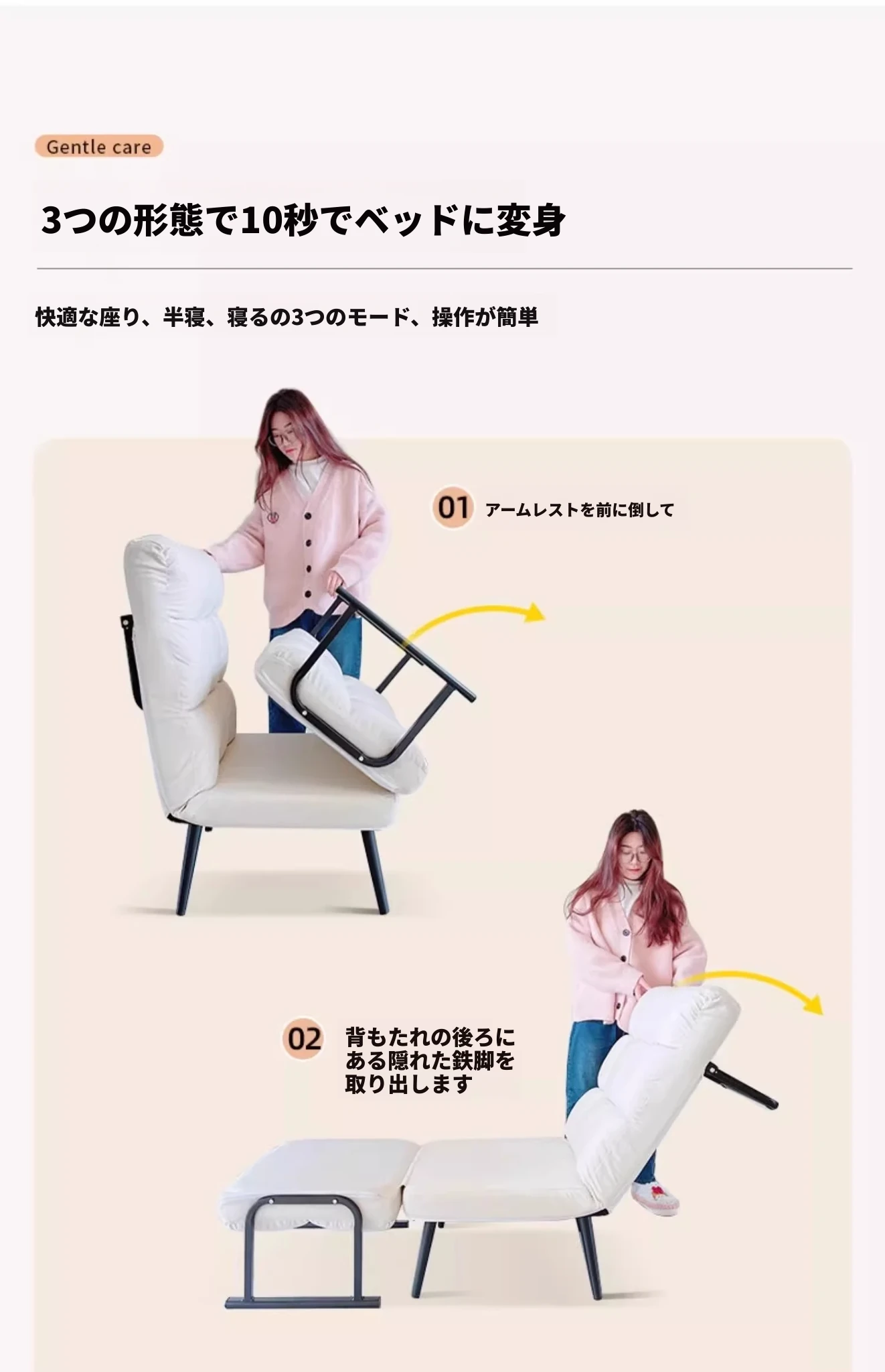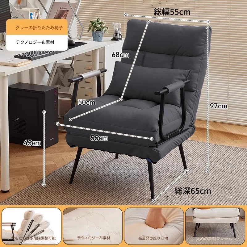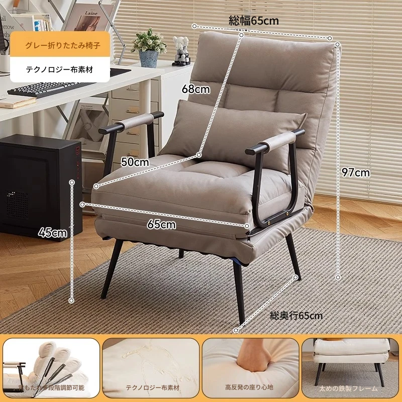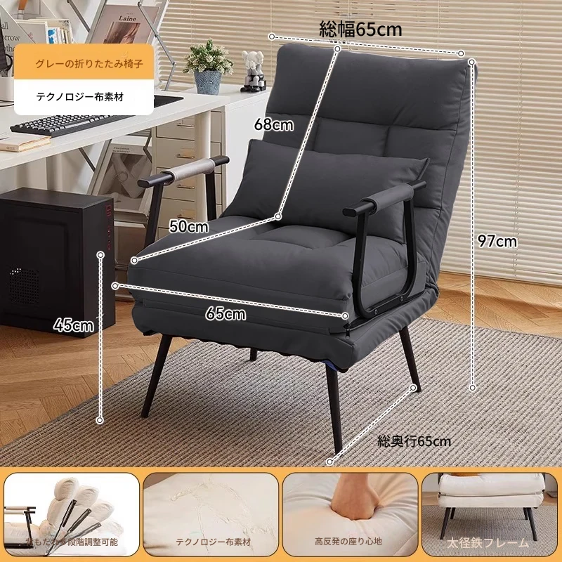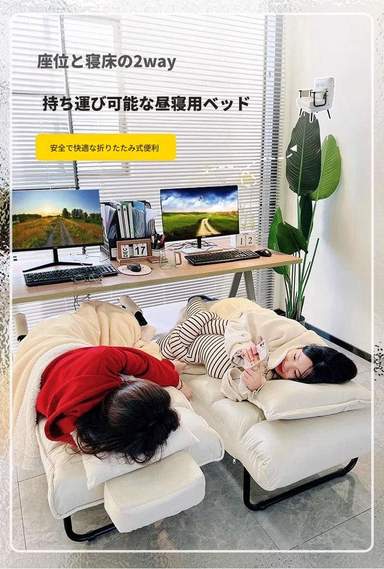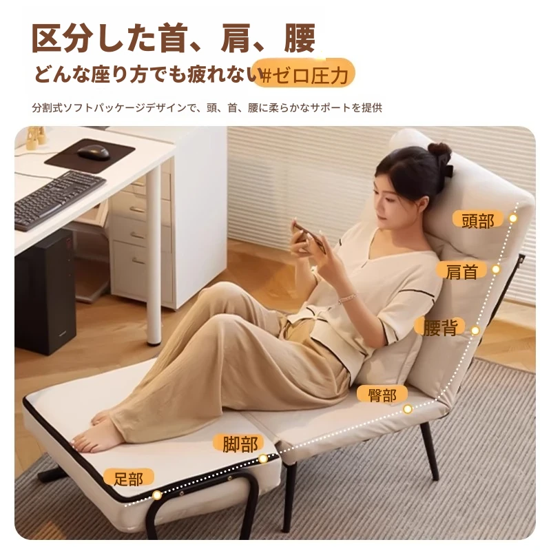 おしゃれで快適!折りたたみ式リクライニングソファチェア - オフィスでの昼寝やバルコニーでのリラックスタイムに最適な新型2WAYソファベッド。あなたの生活にぴったりのアイテムです!