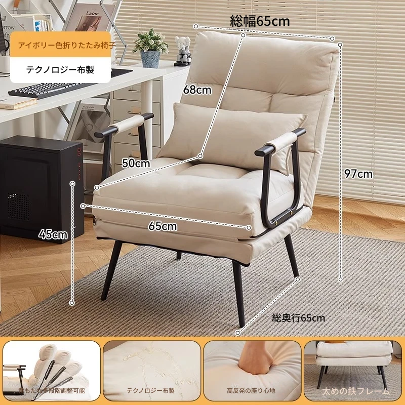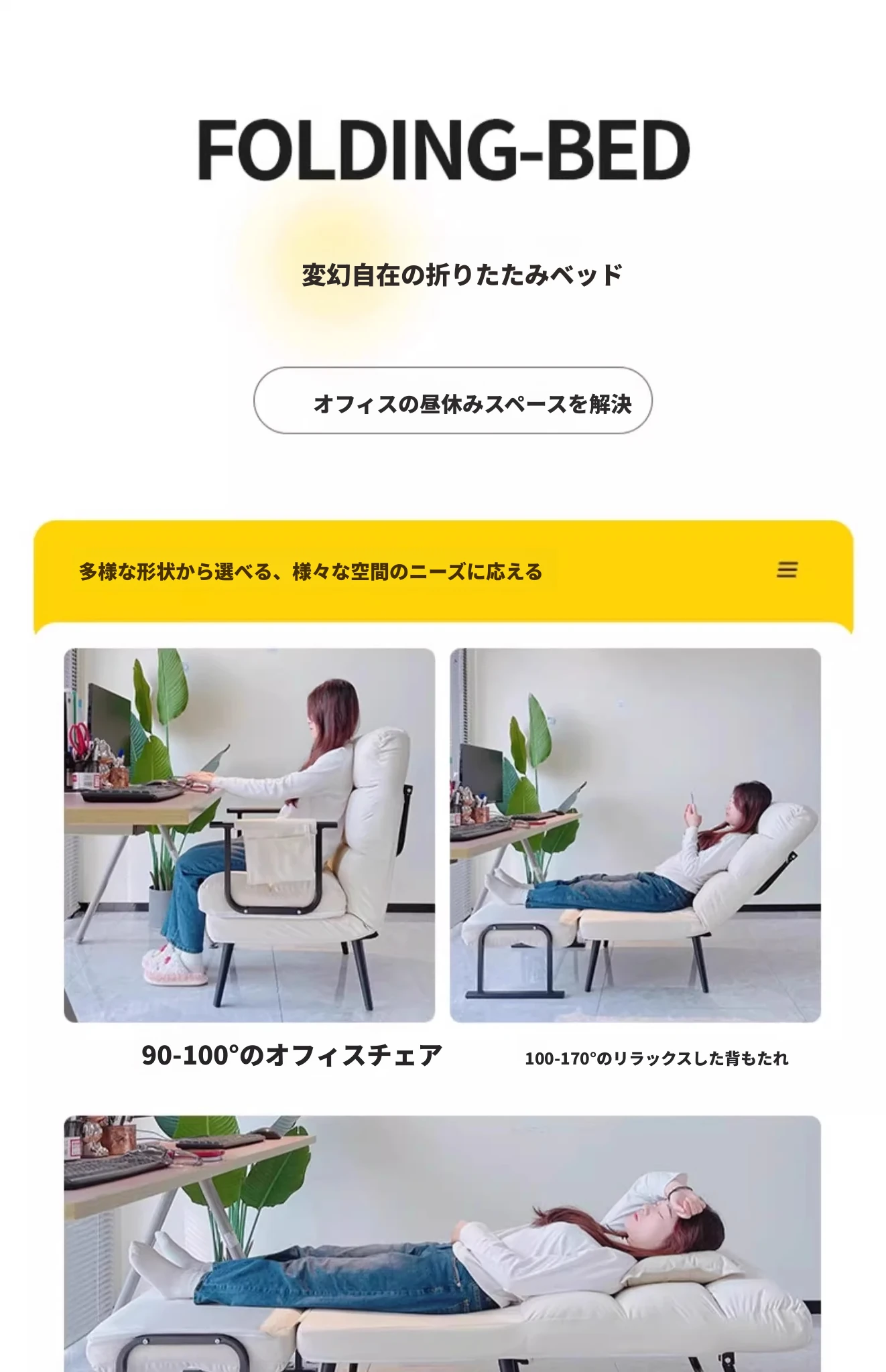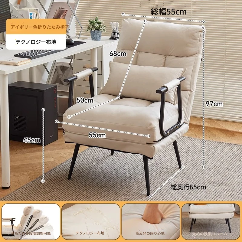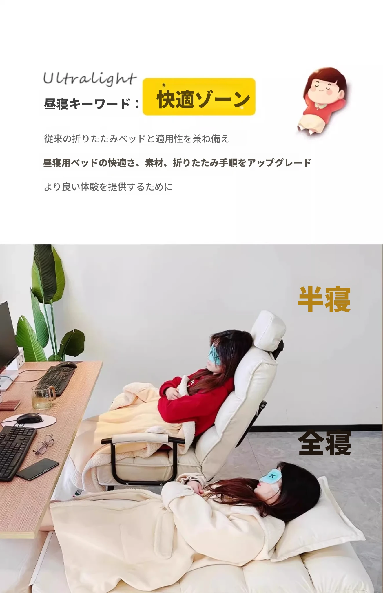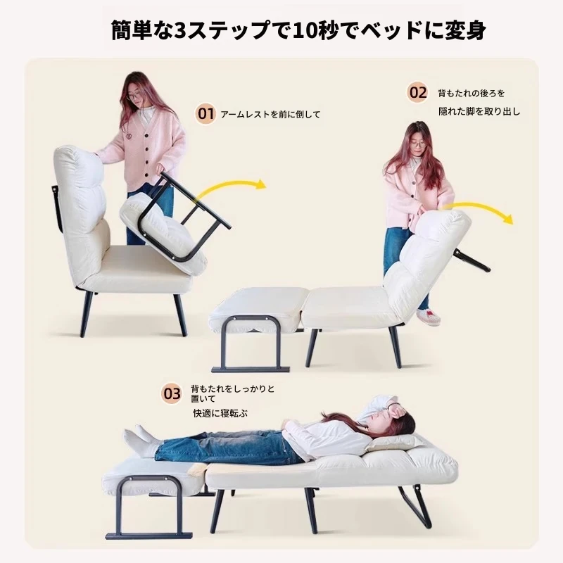 おしゃれで快適!折りたたみ式リクライニングソファチェア - オフィスでの昼寝やバルコニーでのリラックスタイムに最適な新型2WAYソファベッド。あなたの生活にぴったりのアイテムです!