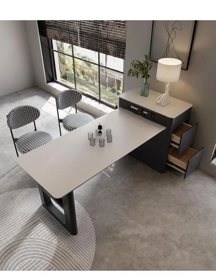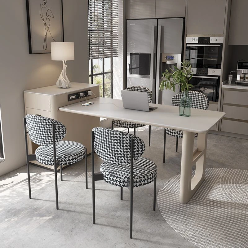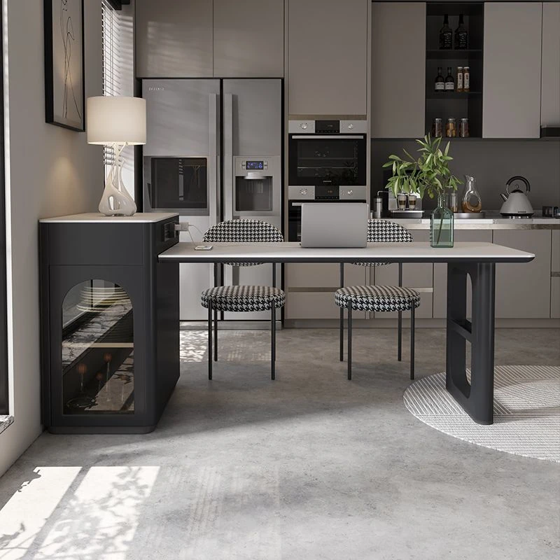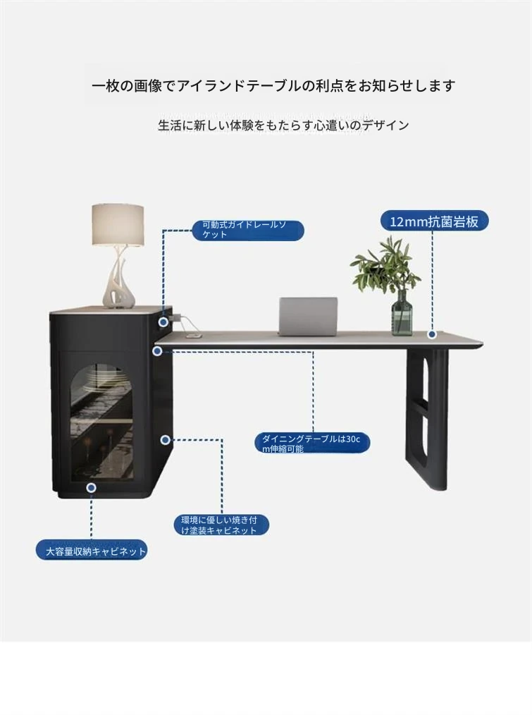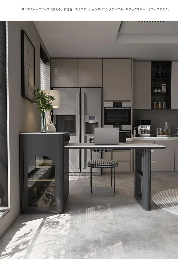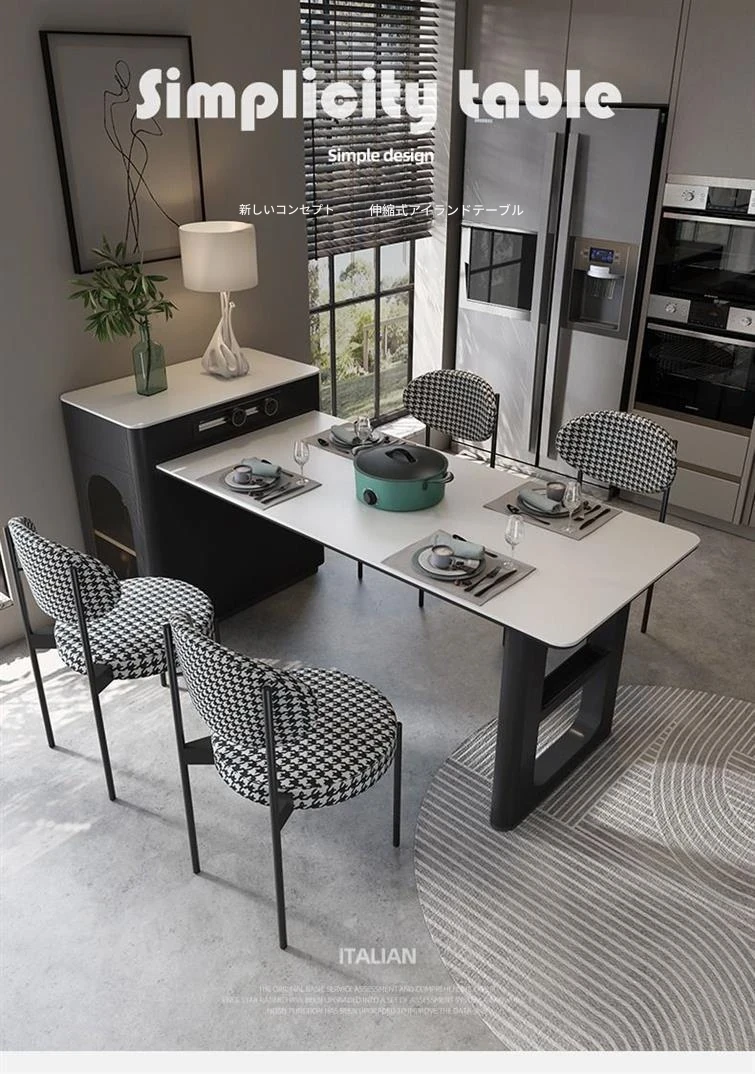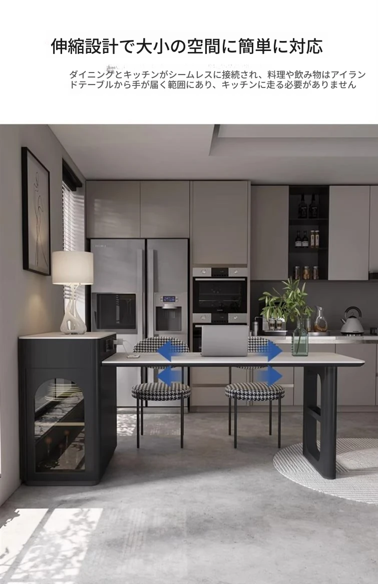 フランス風の伸縮式アイランドテーブル - 高級感あふれる天板一体型、コンパクトな家用ダイニングテーブル。狭いスペースでも大活躍!小さなお部屋にぴったりのスタイリッシュな選択。