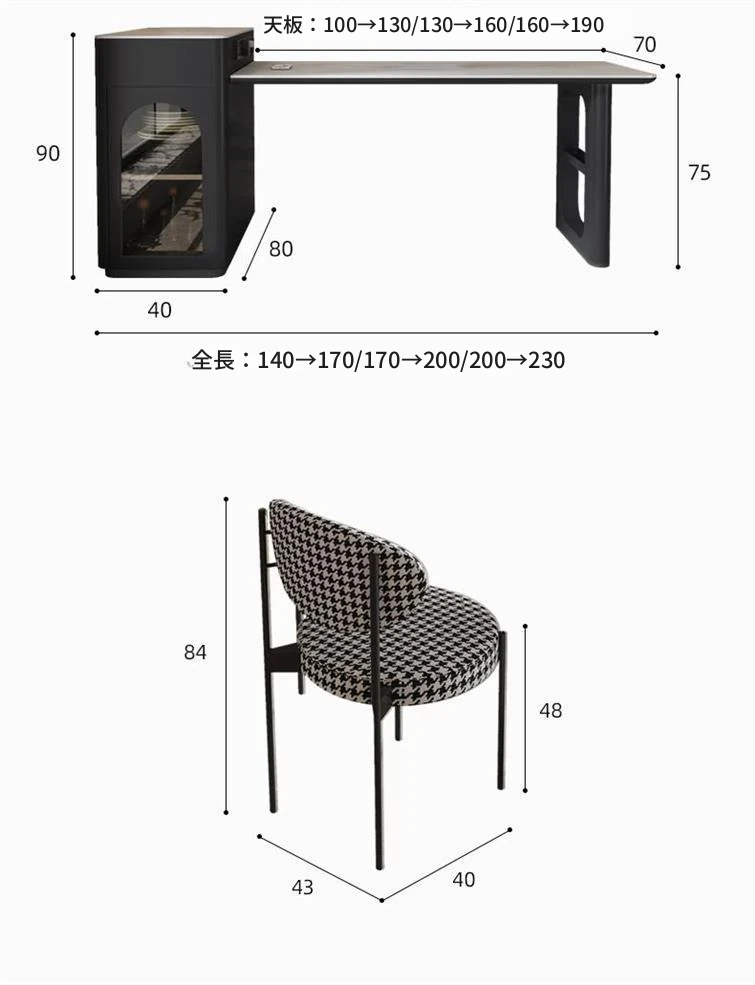 1.7-2.0メートル伸縮アイランドテーブル+4椅子
