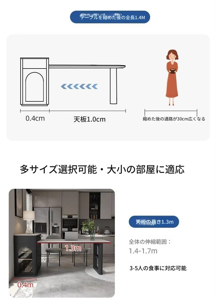 1.4-1.7メートル伸縮アイランドテーブル+4椅子