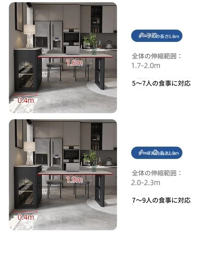 1.7-2.0メートル伸縮アイランドテーブル+6椅子