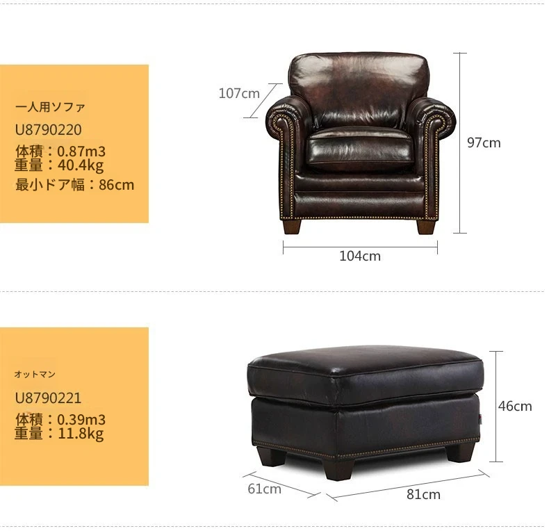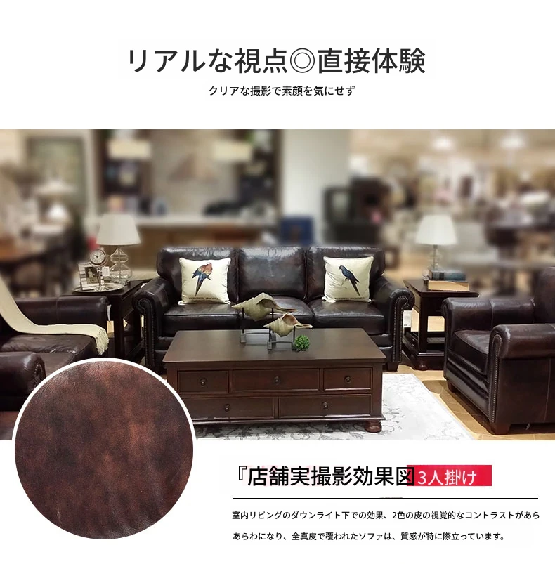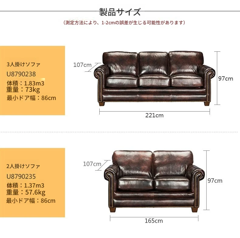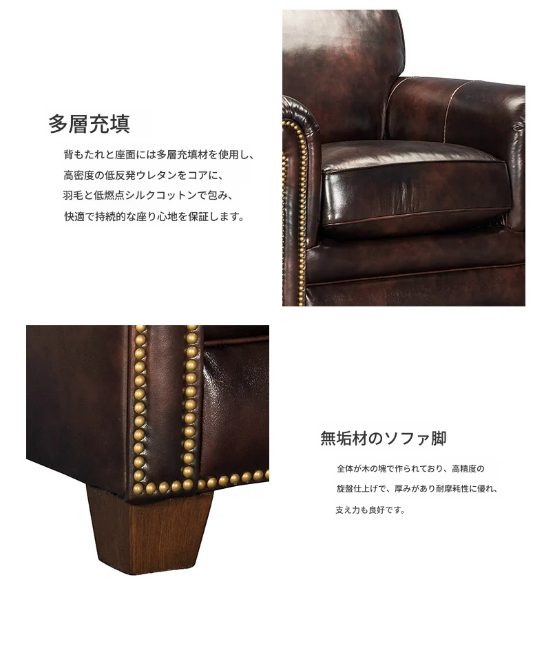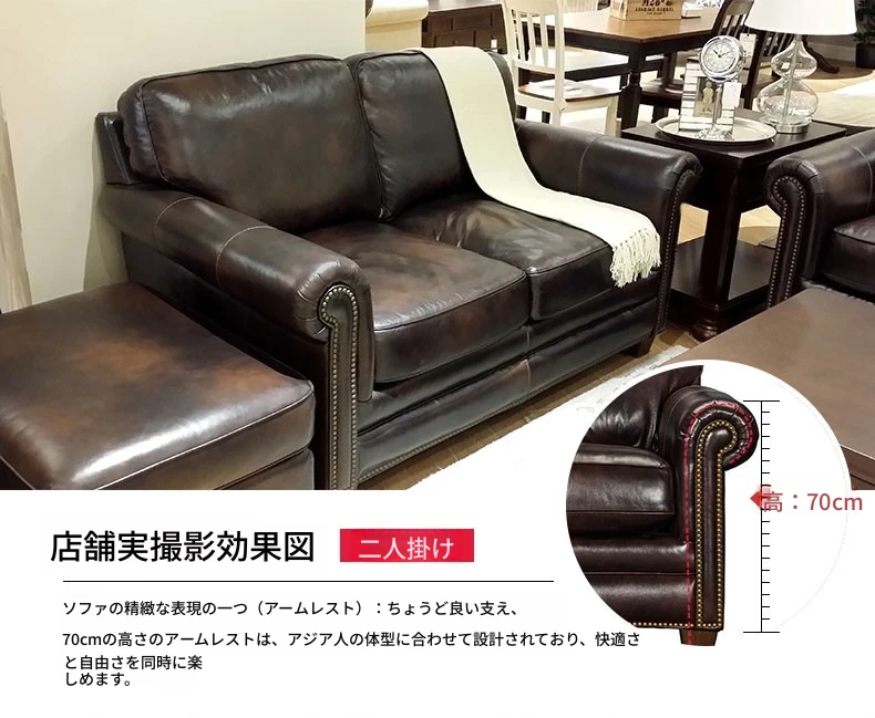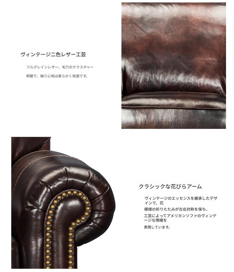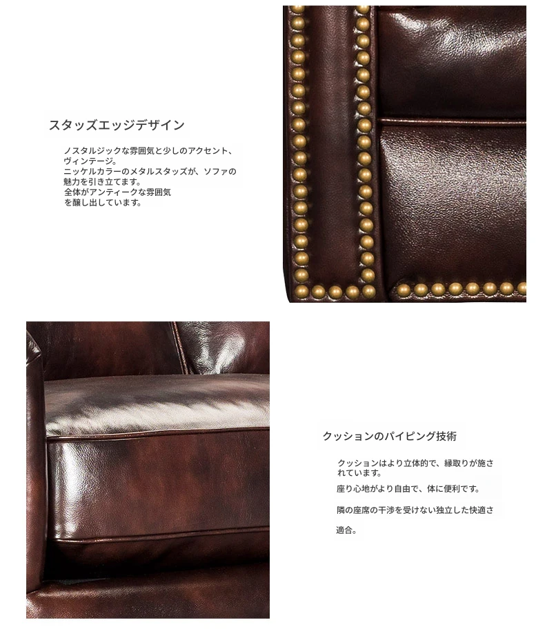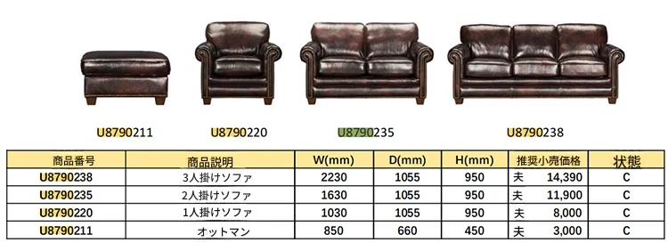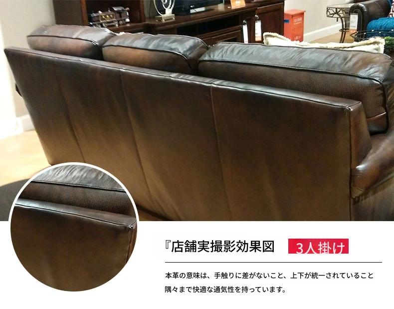 本革製インポートU8790正規品アシリソファー3人用、アメリカンクラシックデザイン、送料無料でお届け!頑丈な無垢材フレーム使用で、長持ちする高品質な一品です。