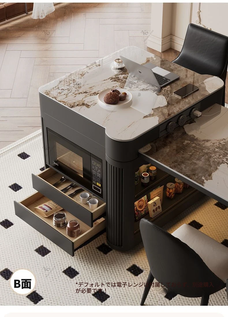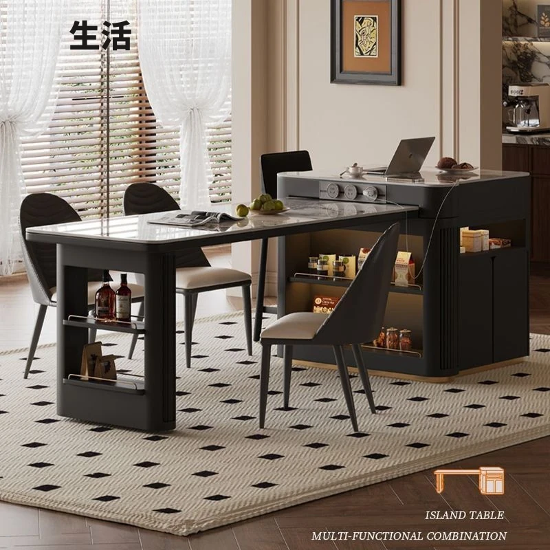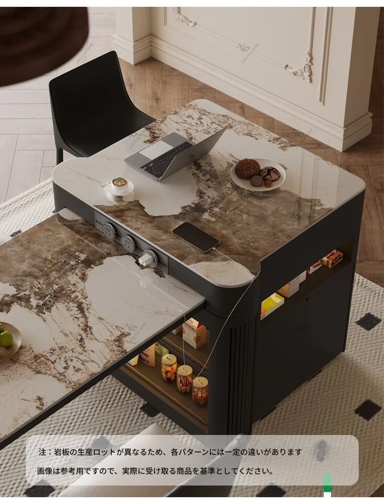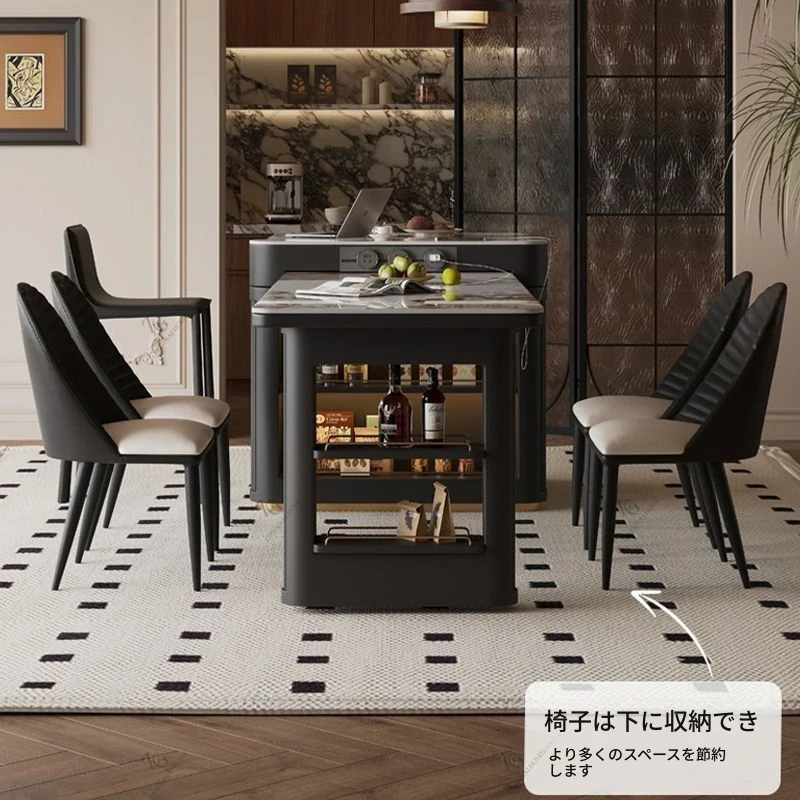 イタリアンスタイルのスラブアイランドテーブル - 家庭用伸縮式モダンアイランドダイニングテーブル。小さなスペースにもぴったりの高級感溢れるデザインで、快適な食事空間を演出します。