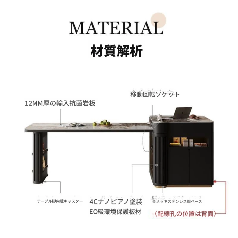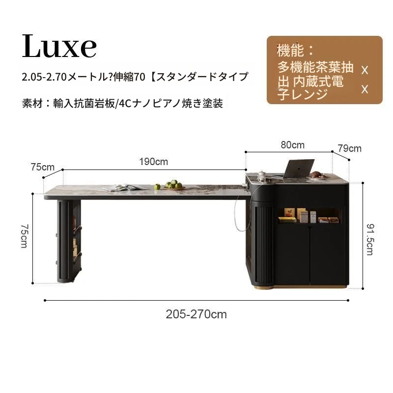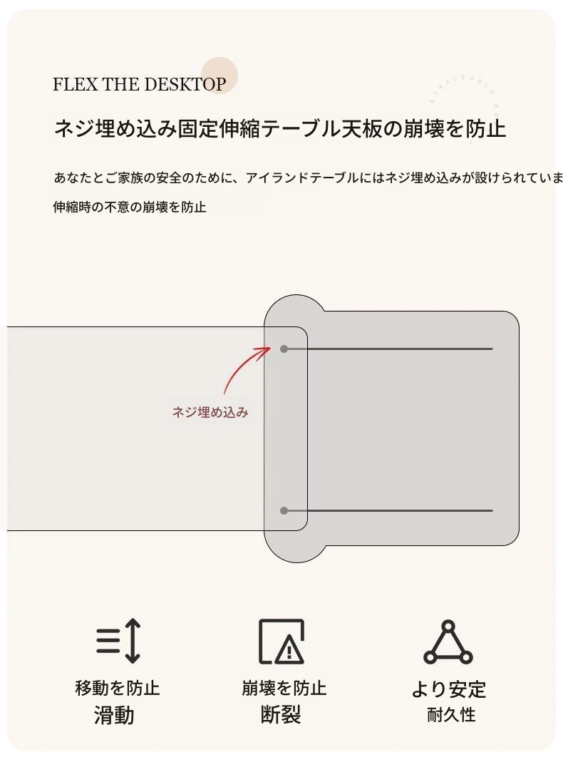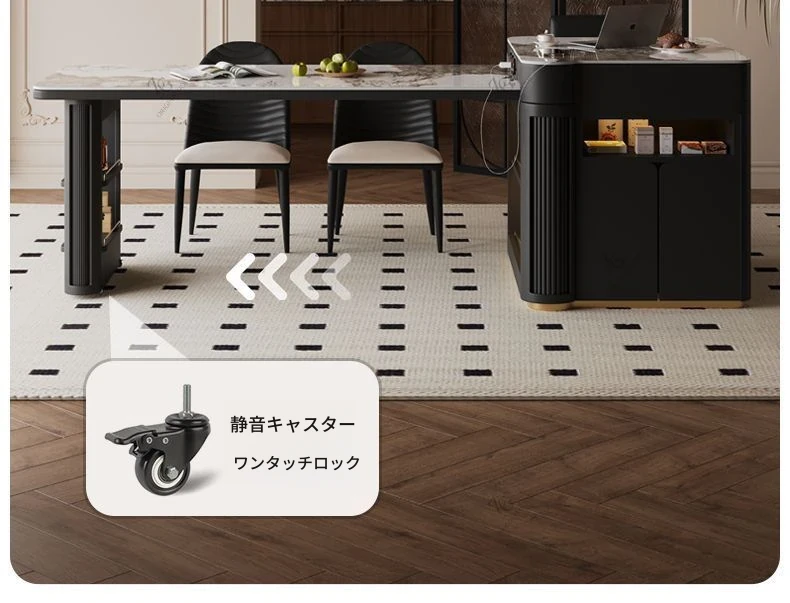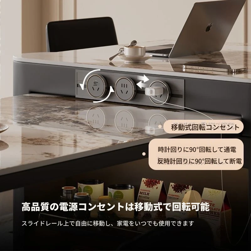イタリアンスタイルのスラブアイランドテーブル - 家庭用伸縮式モダンアイランドダイニングテーブル。小さなスペースにもぴったりの高級感溢れるデザインで、快適な食事空間を演出します。