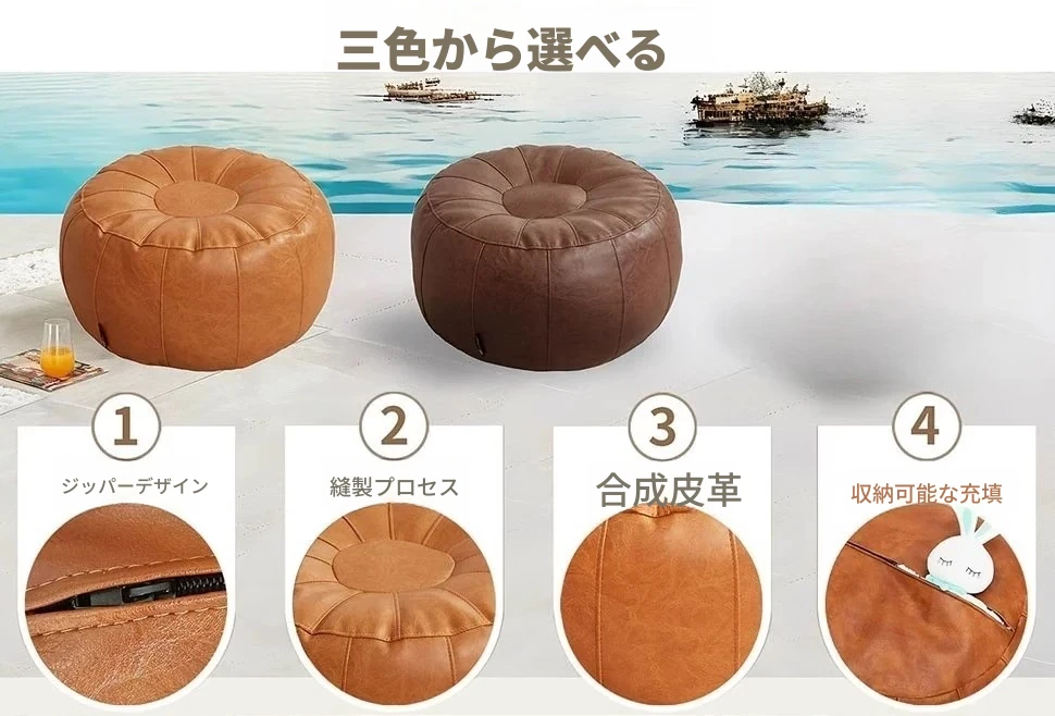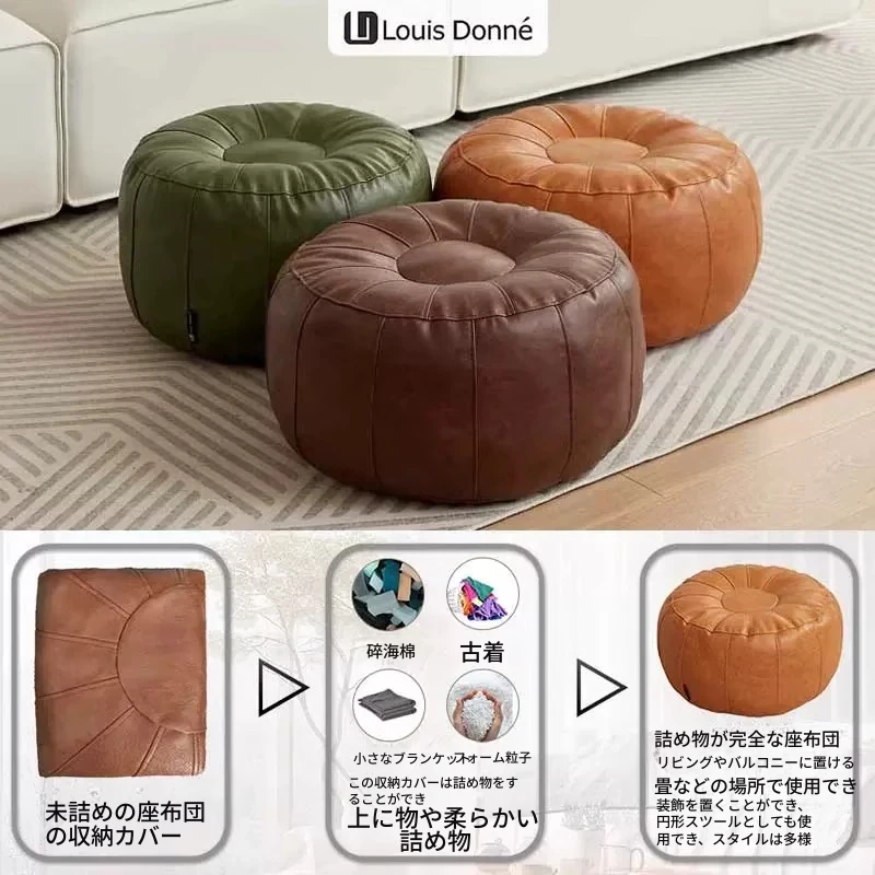 収納可能!使いやすいラウンジソファカバー - 中身なしのクッション付きスツール、古着でリサイクル可能なソファカバーで快適さとおしゃれを両立!