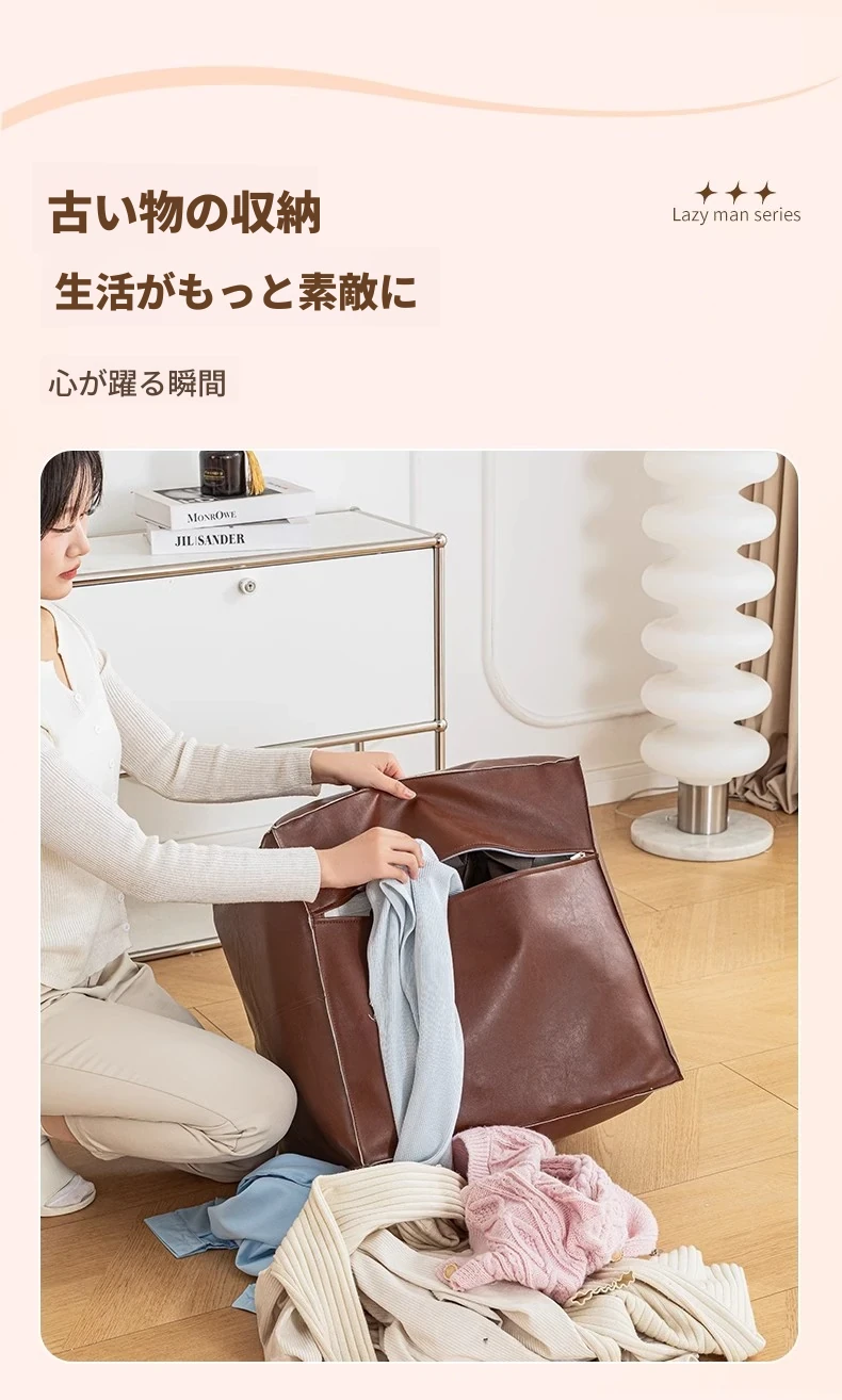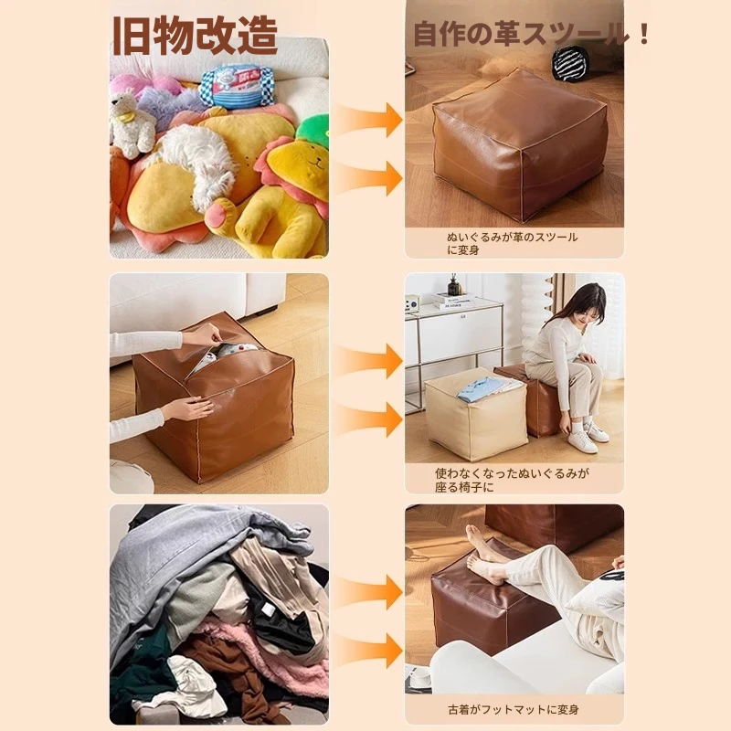 収納もできる!自分で詰めるおしゃれな懶人ソファカバー。古着を使って、あなただけのリラックス空間を作ろう!フロアクッションやスツールとしても使える便利アイテム!