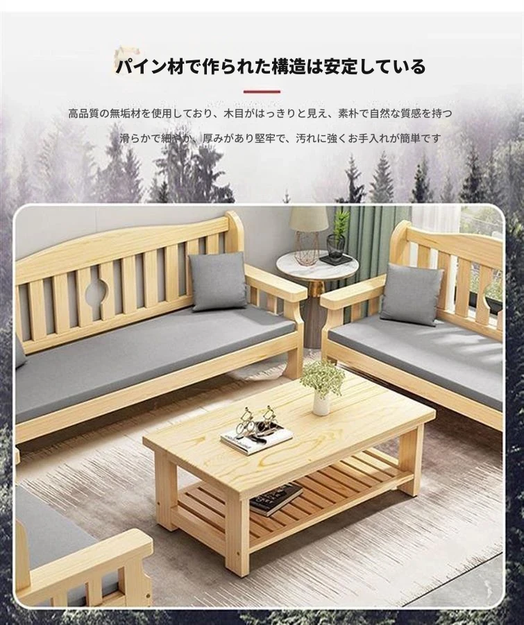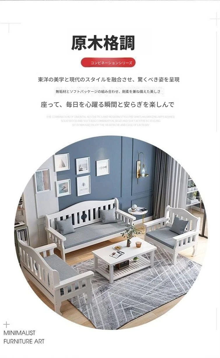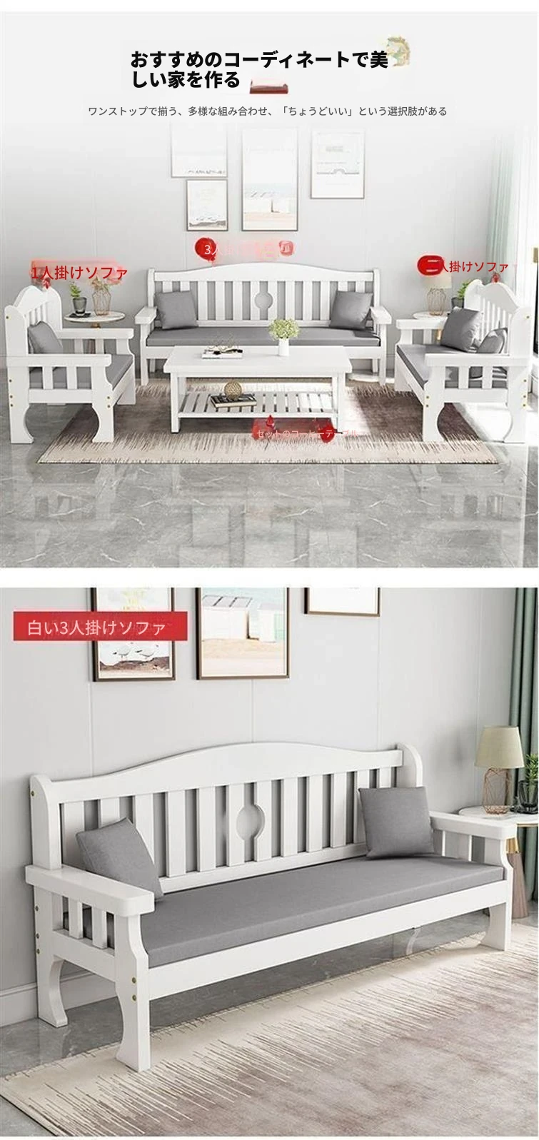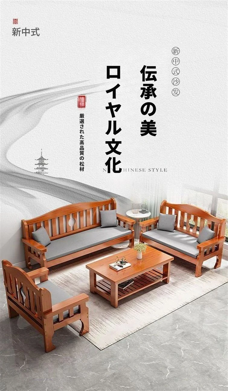 シンプルな中華スタイルの3人掛けソファセット - 小さなリビングに最適な実木製のモダンな背もたれ付きベンチ。心地よい空間を演出し、温もり溢れるおしゃれなインテリアを実現します!