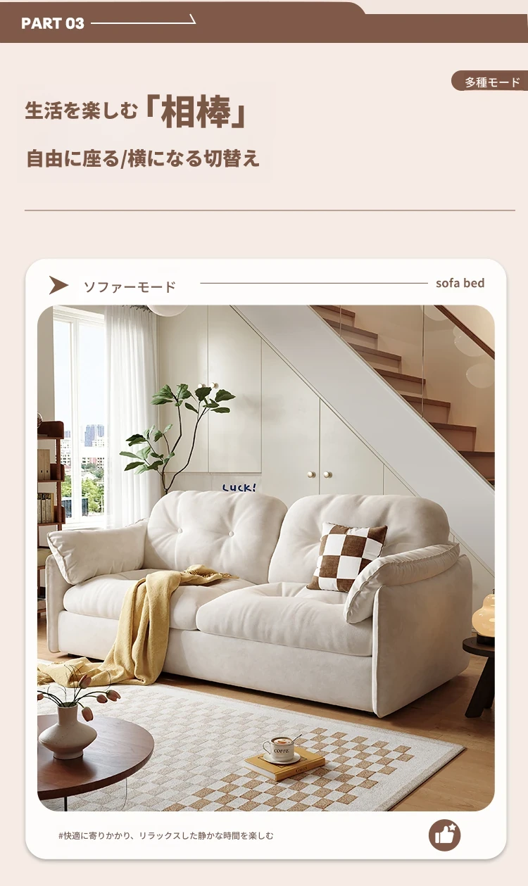 木宮匠のドーラソファ|リビングにぴったり!ゆったりとくつろげる2wayソファベッド|おしゃれで機能的な小型多機能ソファベッド、ネットで大人気!