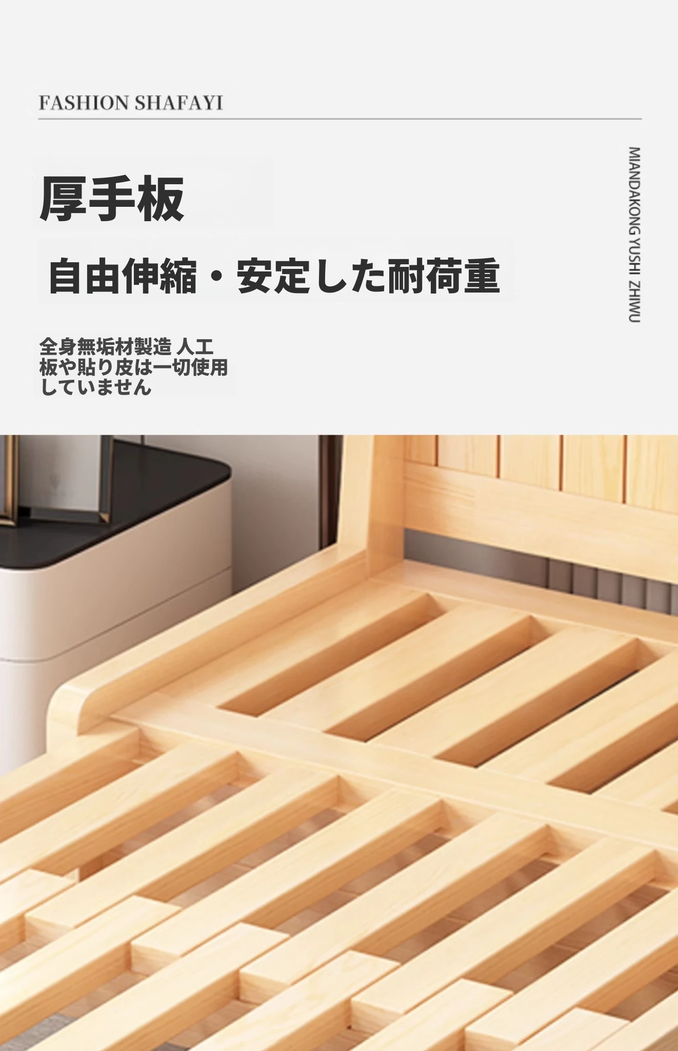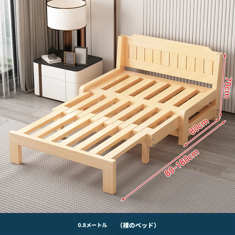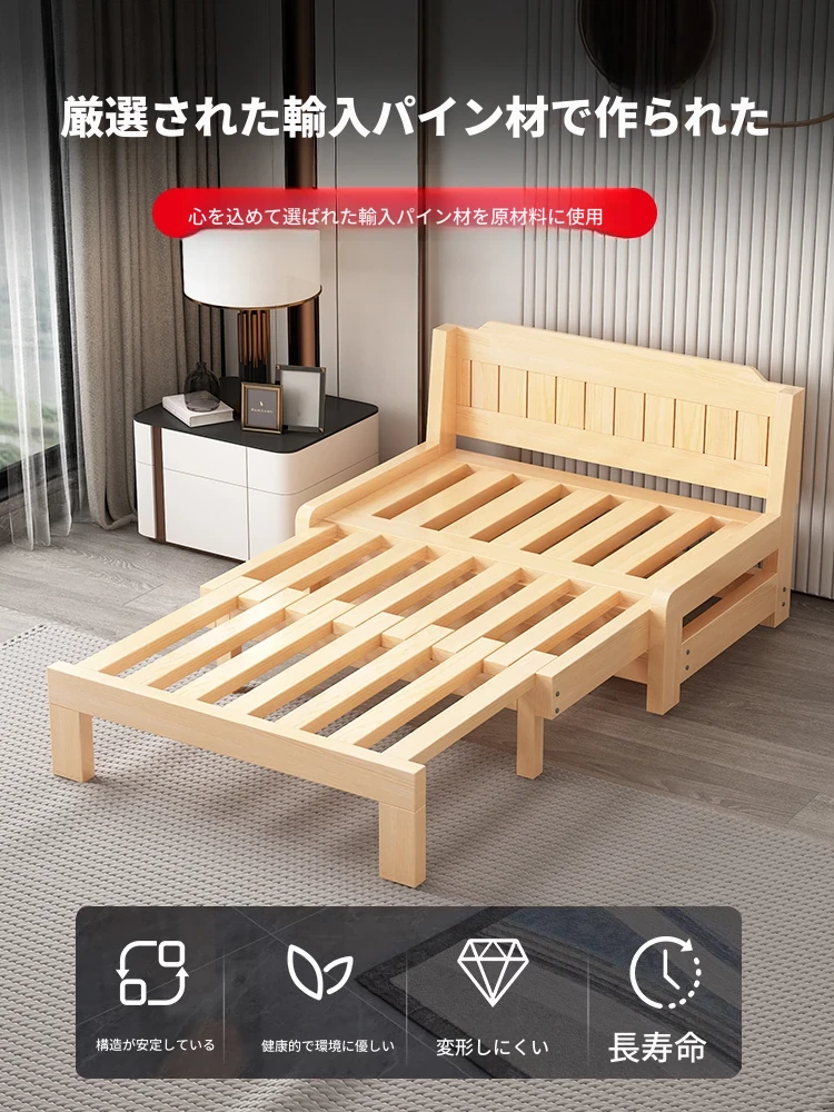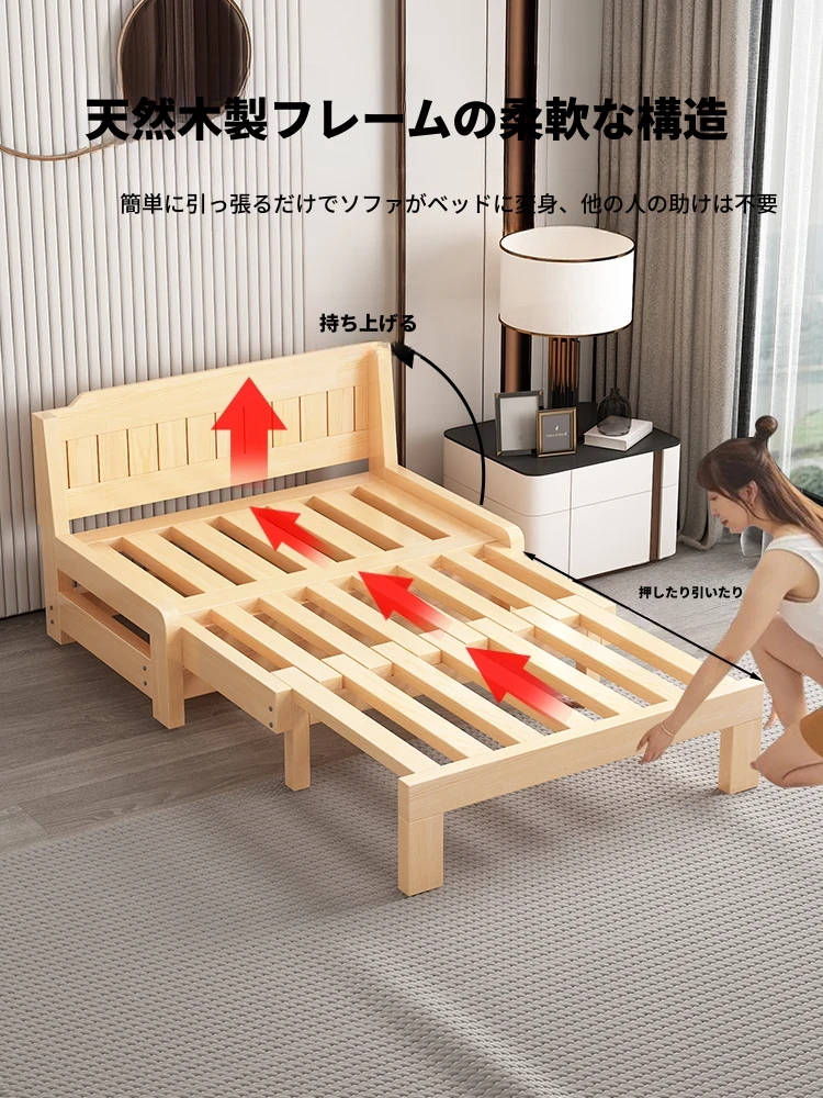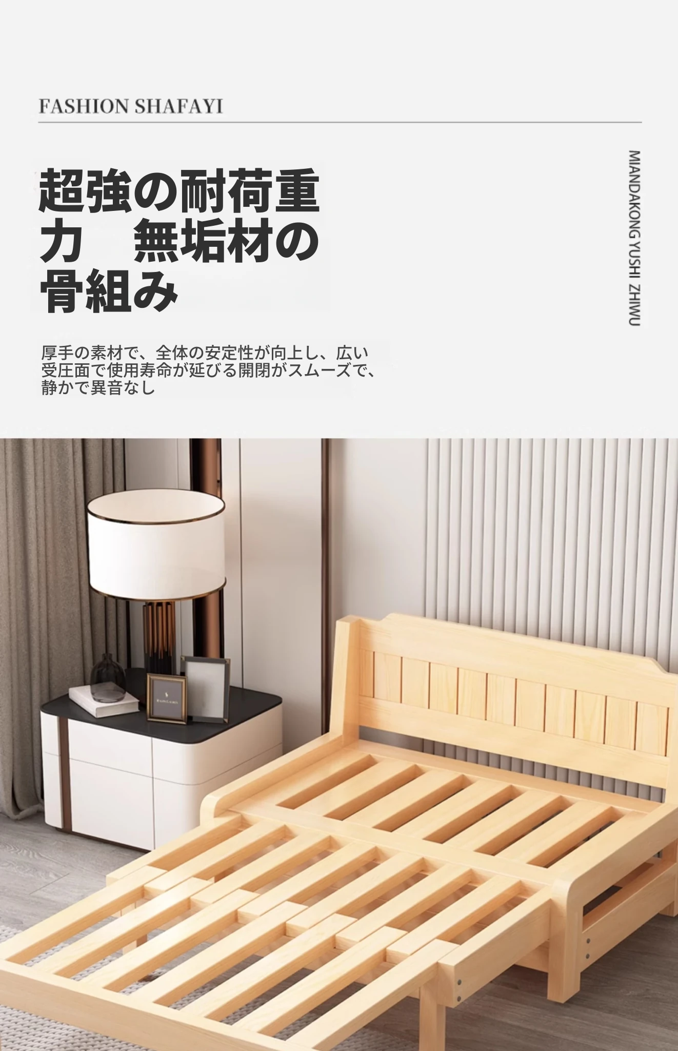 折りたたみ可能な無垢材製ソファベッド!家族みんなに最適な多機能伸縮ベッド。リビングにぴったりなシングル&ダブル対応、1.5メートルのスライド式無垢材ベッドで、快適な空間を演出します。