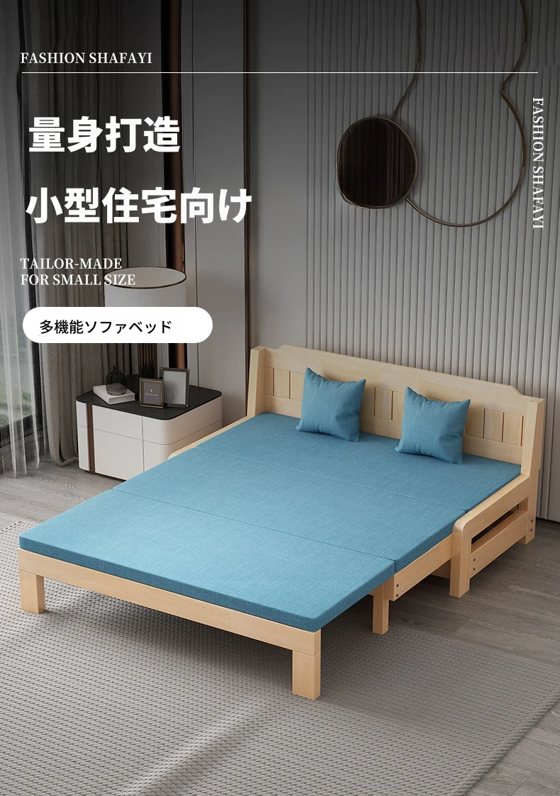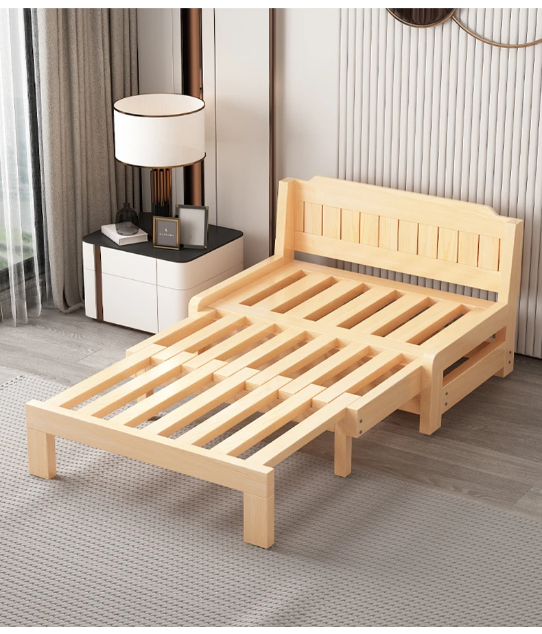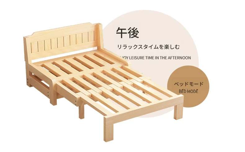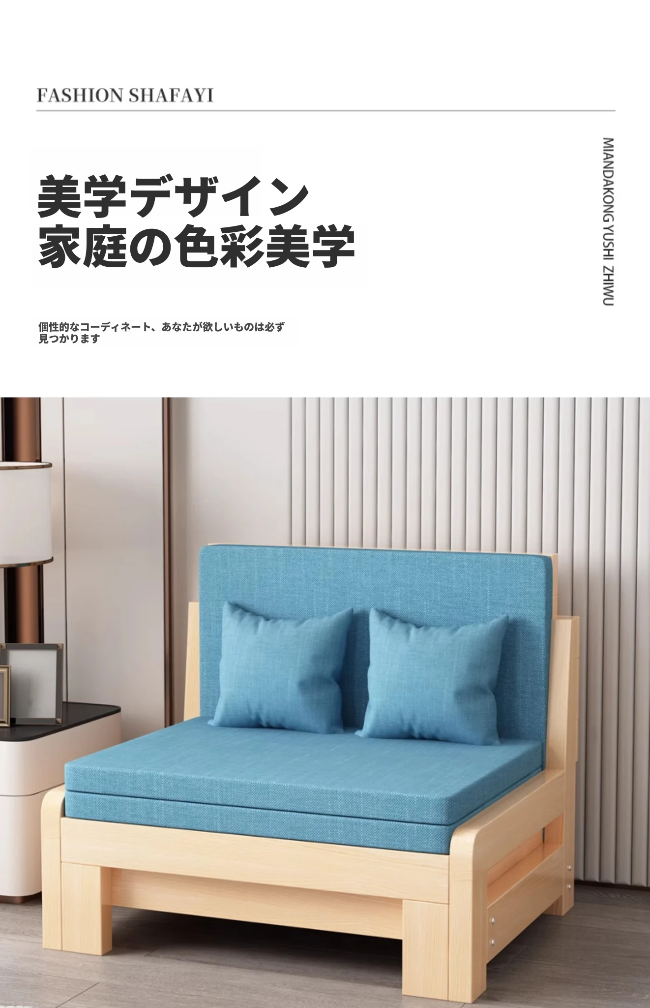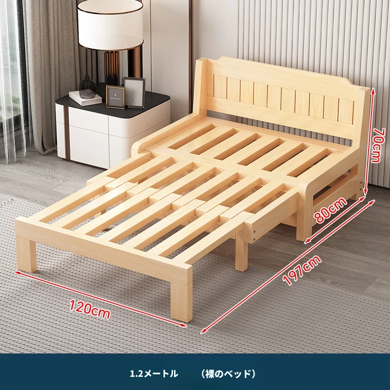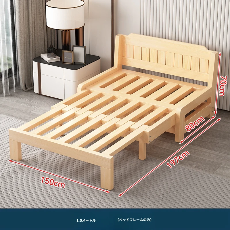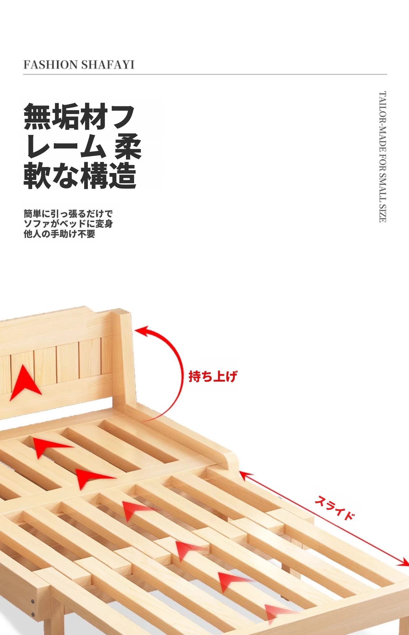折りたたみ可能な無垢材製ソファベッド!家族みんなに最適な多機能伸縮ベッド。リビングにぴったりなシングル&ダブル対応、1.5メートルのスライド式無垢材ベッドで、快適な空間を演出します。