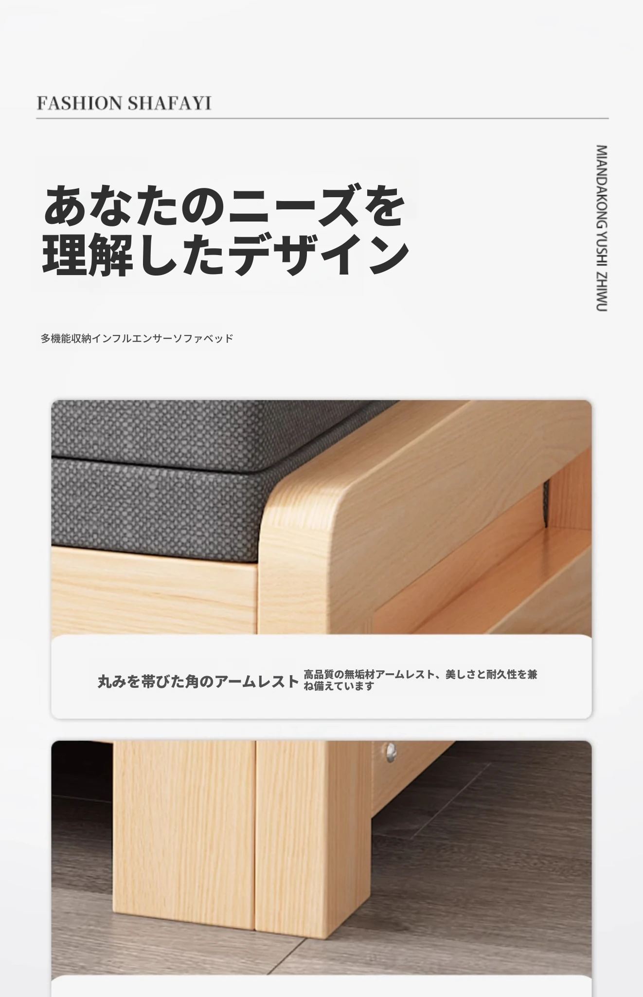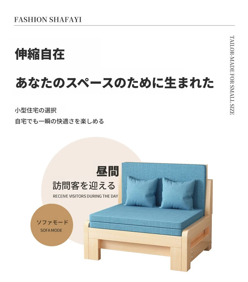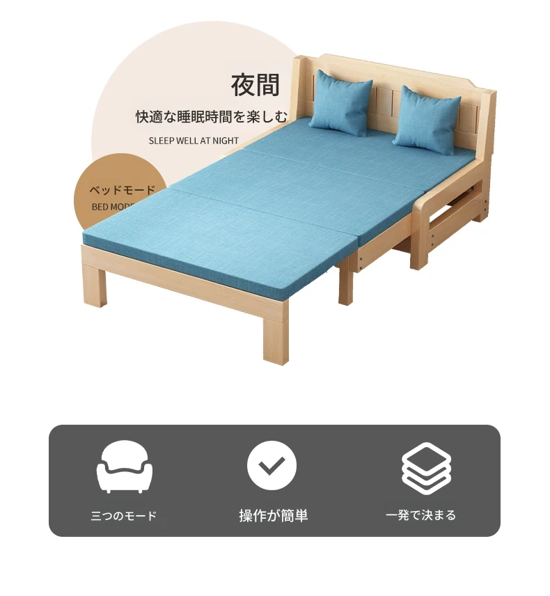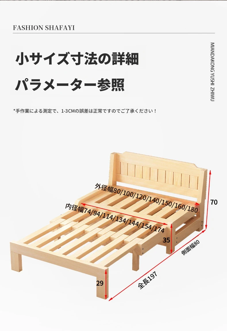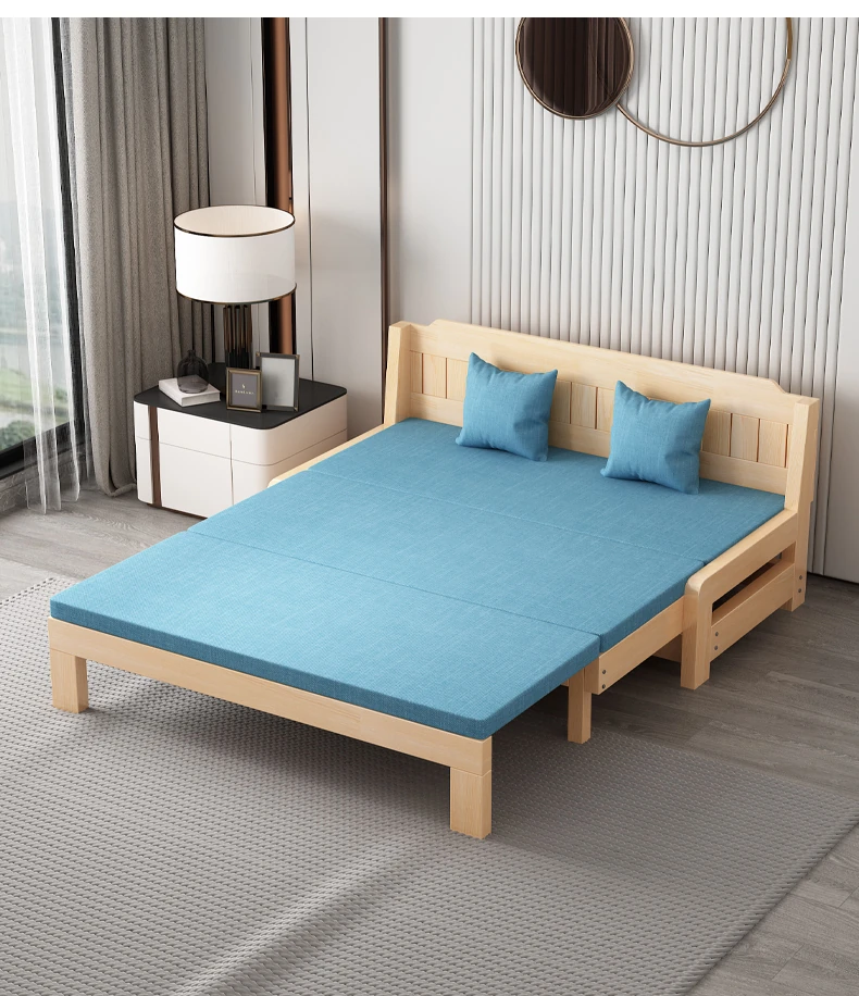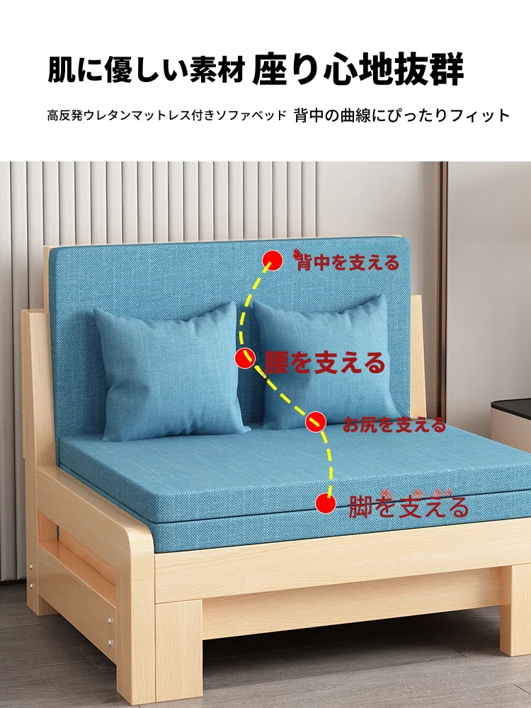 折りたたみ可能な無垢材製ソファベッド!家族みんなに最適な多機能伸縮ベッド。リビングにぴったりなシングル&ダブル対応、1.5メートルのスライド式無垢材ベッドで、快適な空間を演出します。