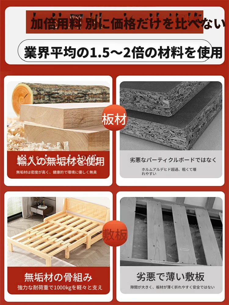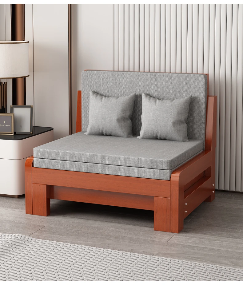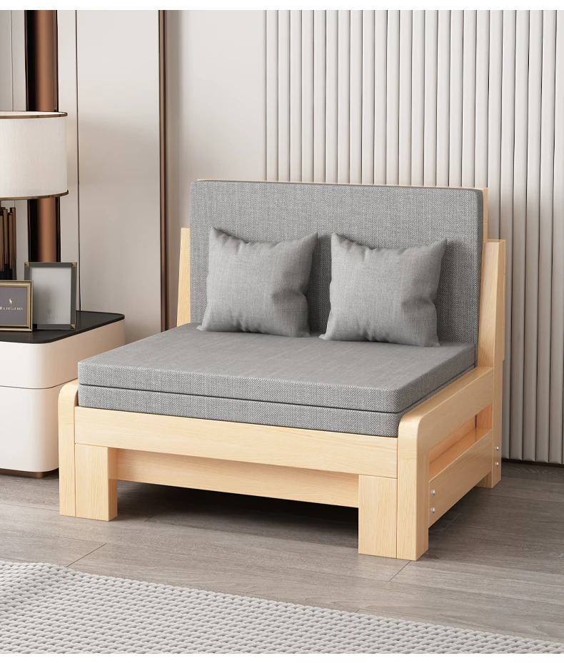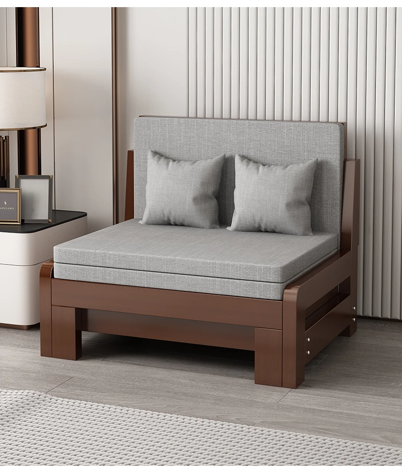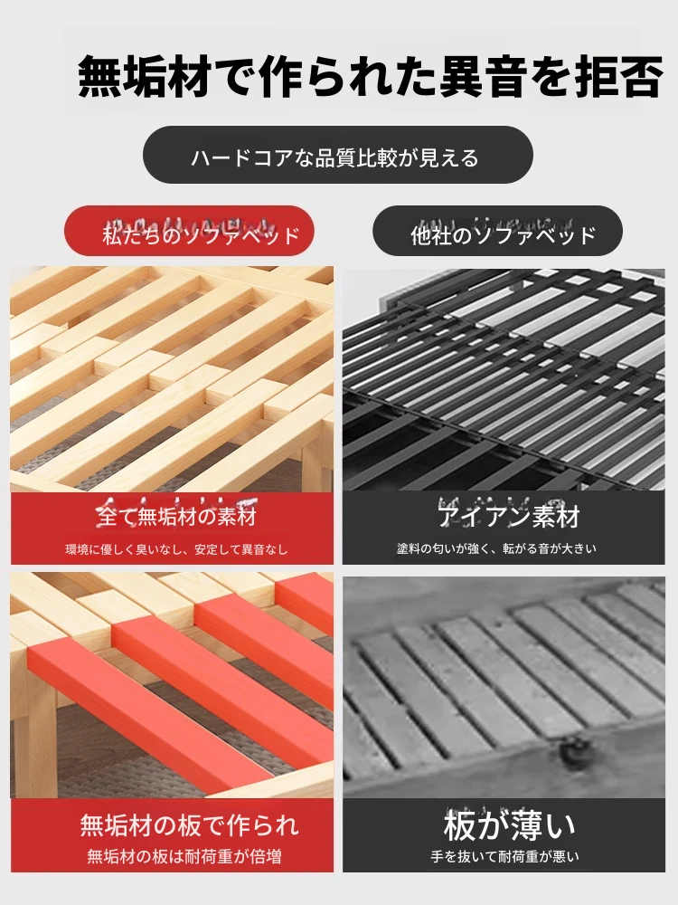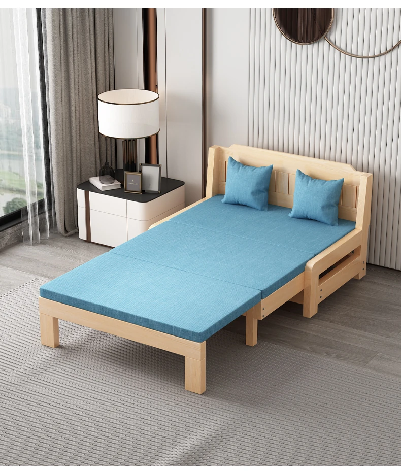 折りたたみ可能な無垢材製ソファベッド!家族みんなに最適な多機能伸縮ベッド。リビングにぴったりなシングル&ダブル対応、1.5メートルのスライド式無垢材ベッドで、快適な空間を演出します。