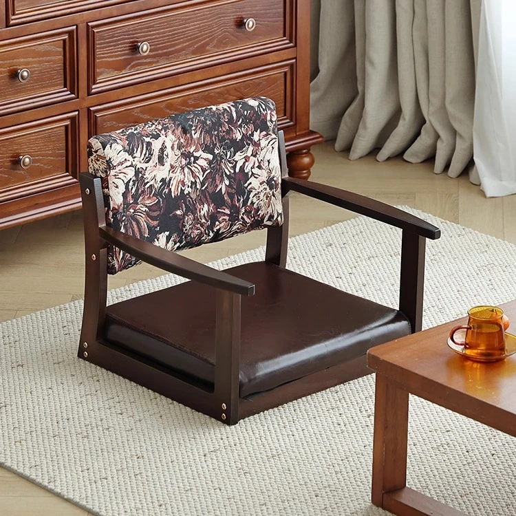 和室用タタミ椅子|日本式天然木製のロースツール|バルコニーや窓際に最適なリラックスソファ|床に座っても快適な背もたれ付きで、あなたのくつろぎ空間を演出します!