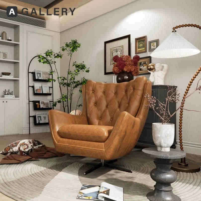 A Gallery 新作!全真皮製の回転式カジュアルチェア - レトロなデザインの一人掛け椅子 U8260060 送料無料!快適な座り心地とスタイリッシュなインテリアを実現します。