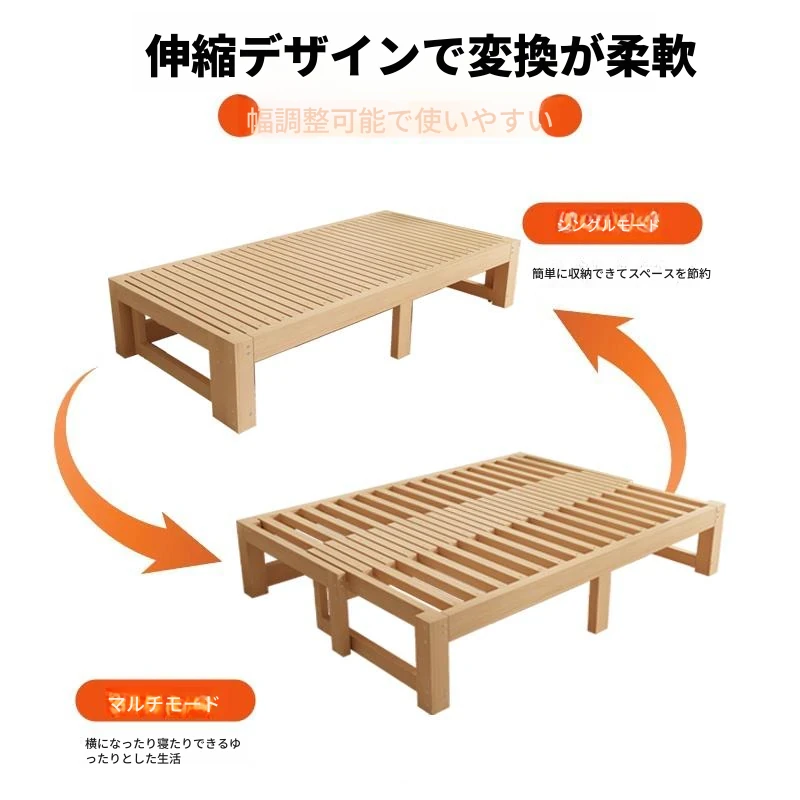 天然木製ソファベッド!引き出し式の一人用タタミベッドで、コンパクトに収納可能。二役をこなす伸縮式デザイン、リビングでも寝室でも大活躍する便利なアイテムです!