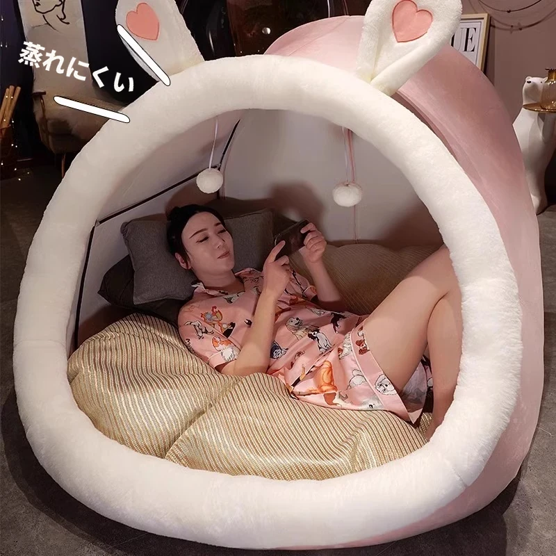 人間用犬小屋型リラックスソファ!寝転んでも眠れる!巨大な猫ハウス、シングルルームにぴったり。子供も大好きなふわふわでかわいいデザイン!女性のリラックスタイムに最適!