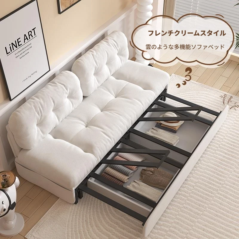 【香港送料無料】フレンチスタイルの雲のようなソファベッド!リビングにぴったりのコンパクトな折りたたみ式、2024年新作、引き出し式で便利さ抜群!小さなお部屋でも大活躍!